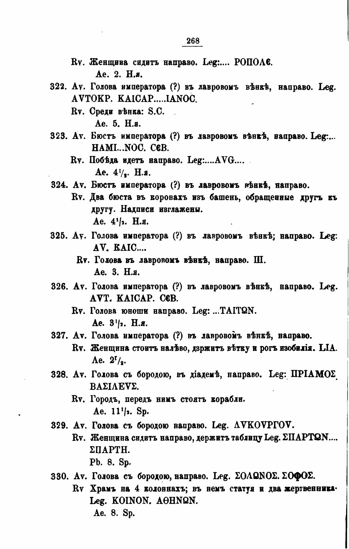 322. Ау. Голова императора (?) въ лавровомъ направо. Т.
