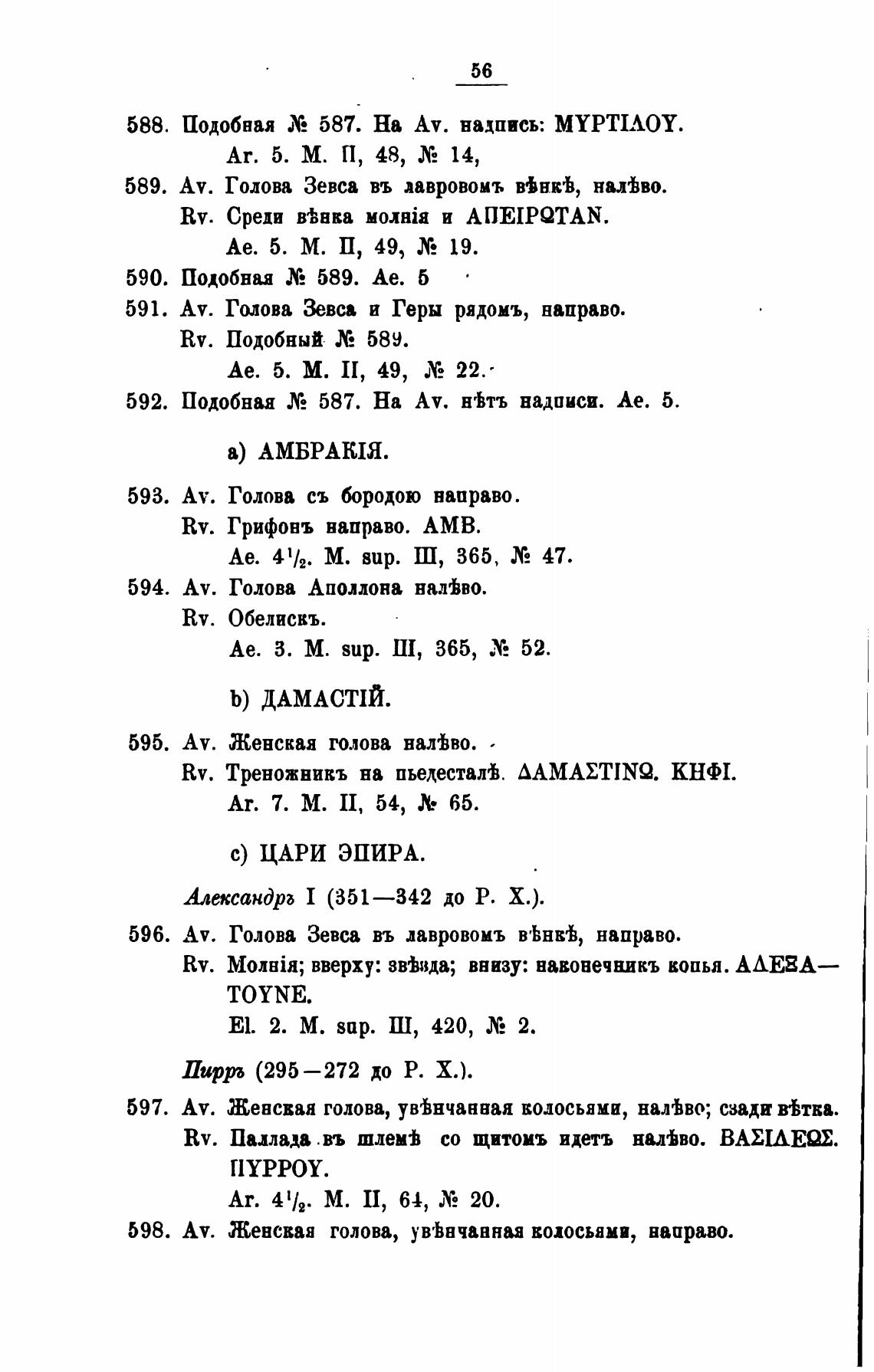 596. Av. Голова Зевса въ лавровомъ В'Ьнв%, направо.