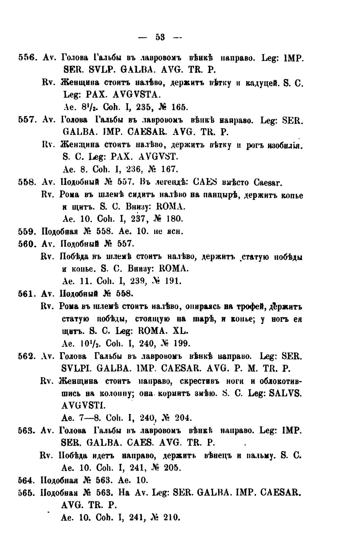 557. Av. Голова Гальбы въ лавровомъ B'hlIk'l; направо. Leg: SER.
