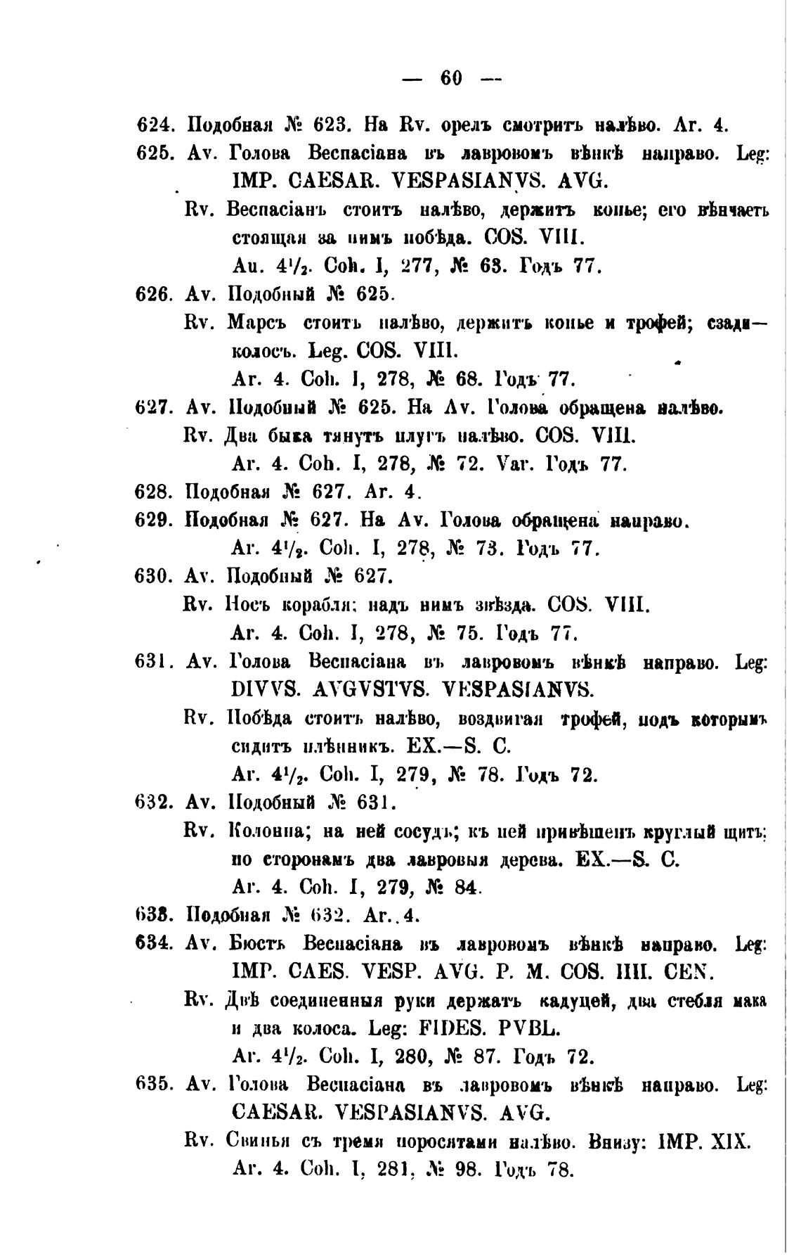 624. Подобная Х: 623. На Rv. орелъ смотрить науЬво. Лт. 4.