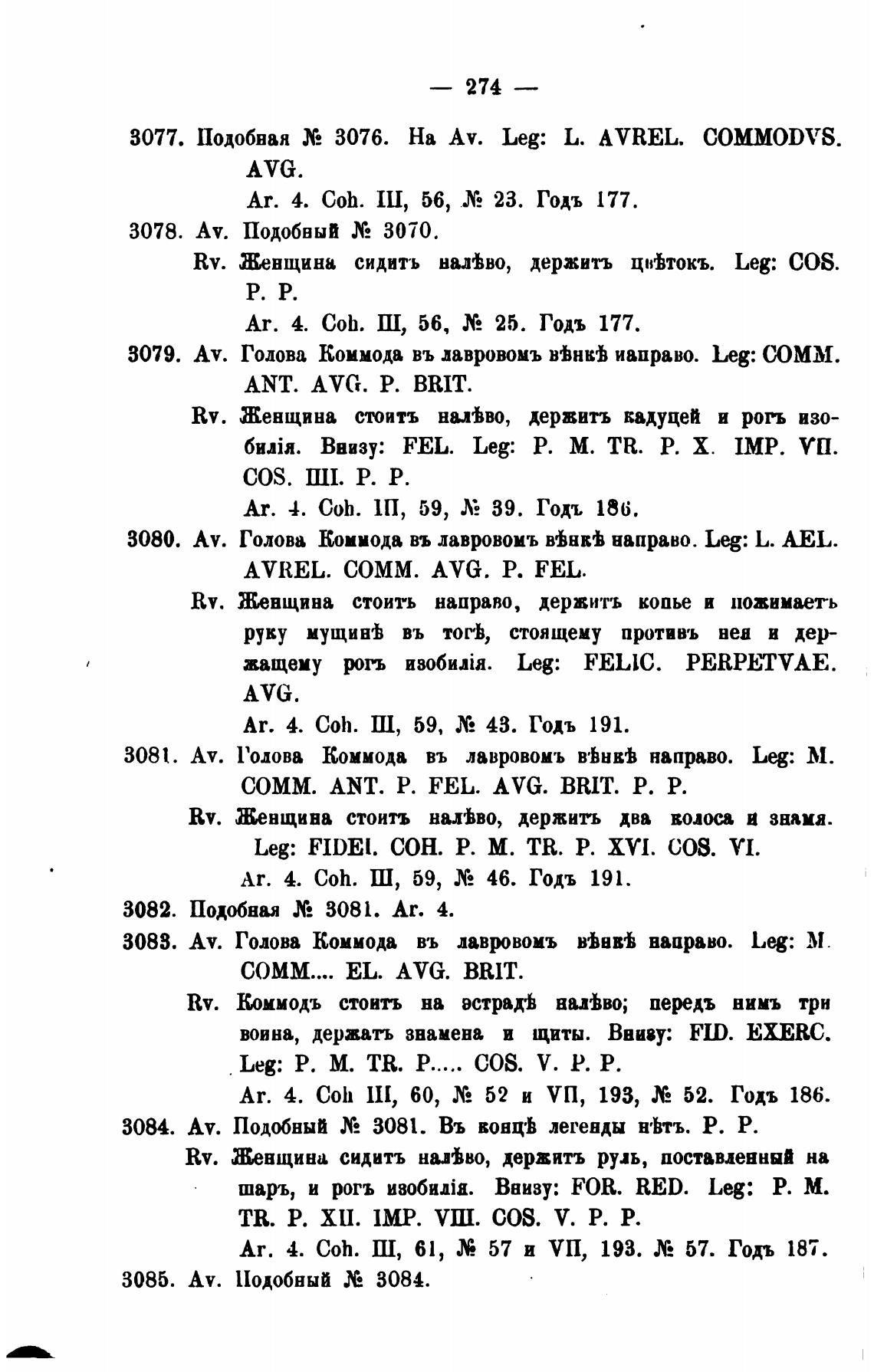 3081. Av. Голова Коммода въ лавровомъ направо. Leg: М.