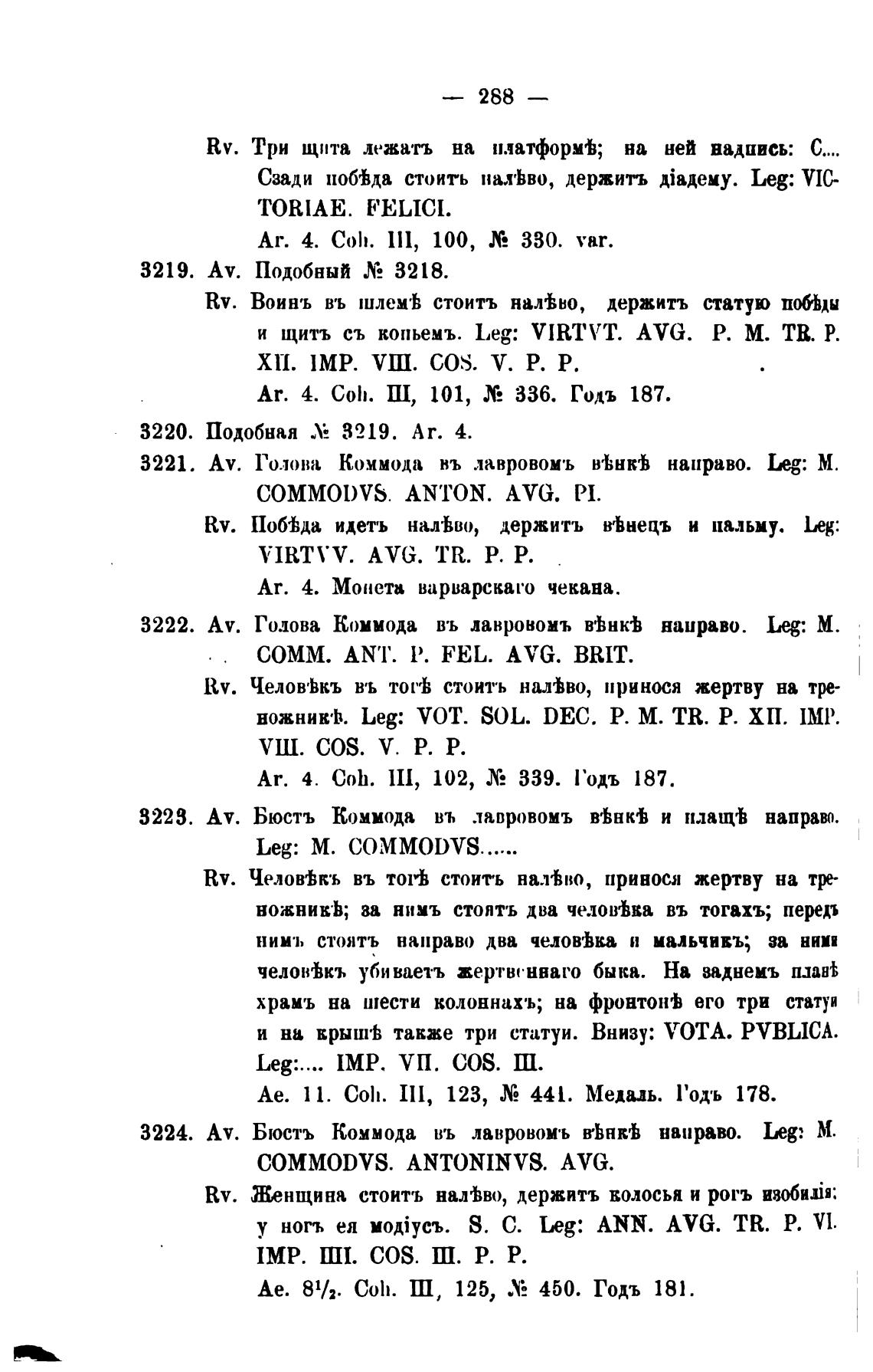 3224. Av. Бюсть Коммода въ лавровомъ в•ЬНЕ'Ь направо. 1-юд: М.