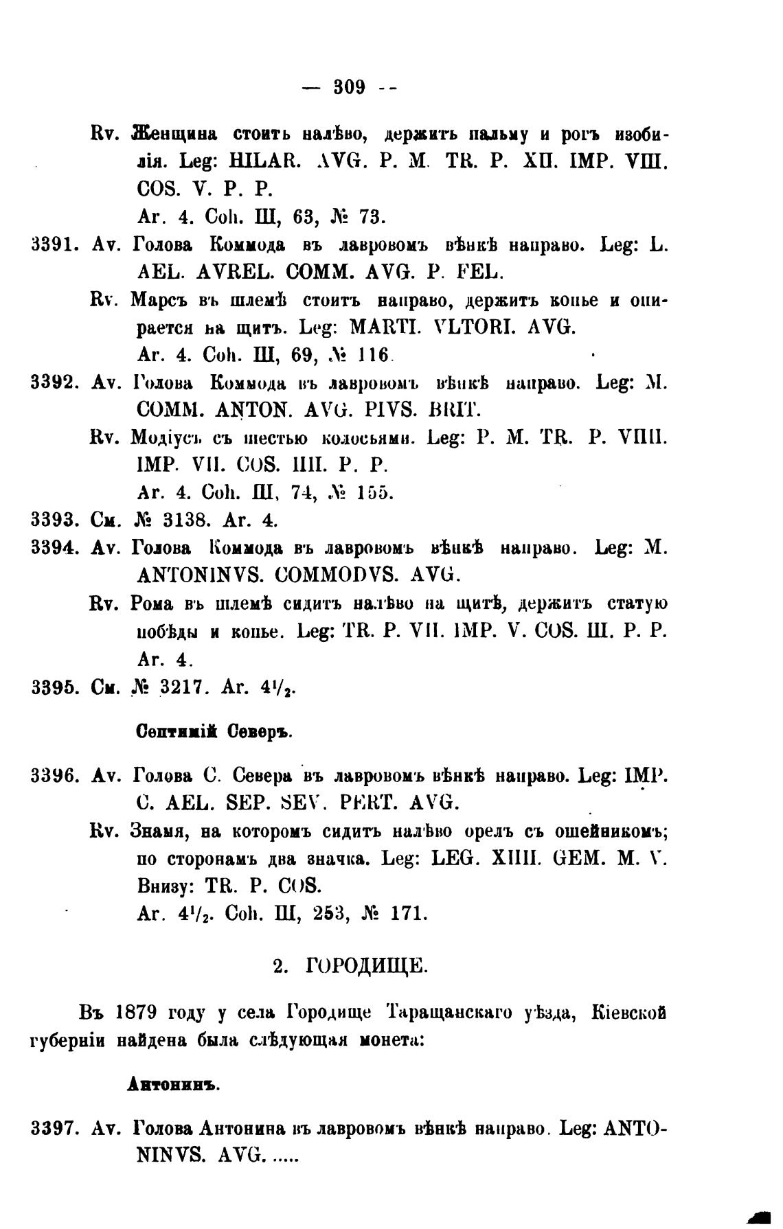3391. Av. Голова Коммода въ лавровомъ BrhHk'h направо. Leg: L.