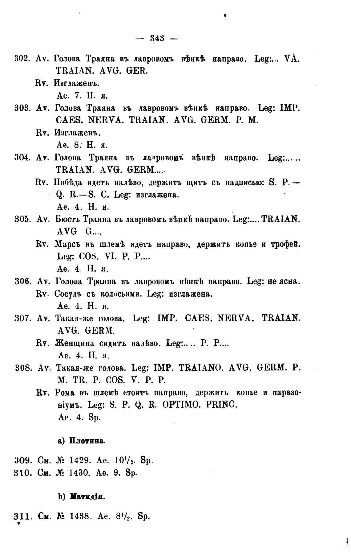 Голова Траяна въ лавровомъ whHk'h направо. Leg: не ясна.