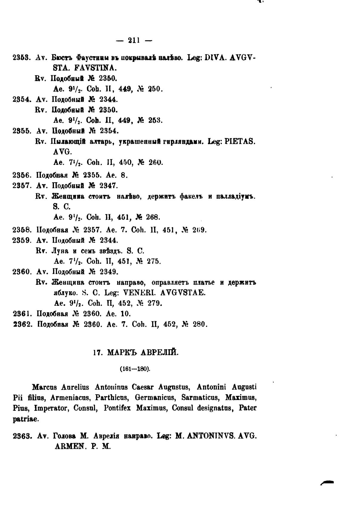 2362. подобная Х, 2360. Ае. 7. Coh. П, 452, 280.