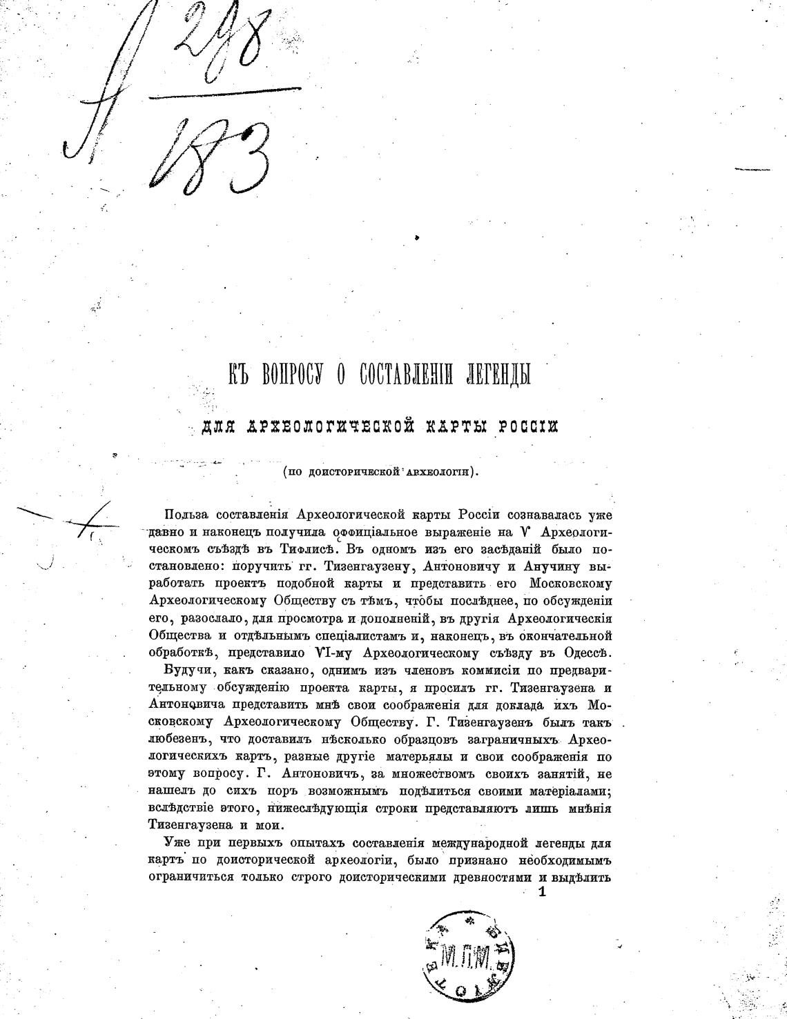 Археологическому Обществу съ тЈмъ, чтббы посд•вднее, по обсужденш