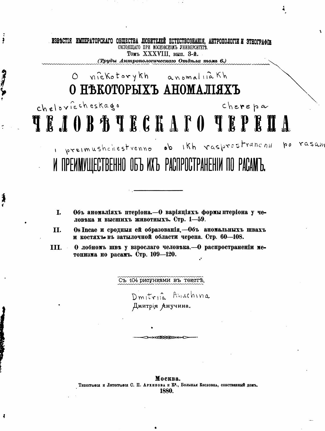 (Труды Антропологическаш Отпдп,ла то.“ б.)