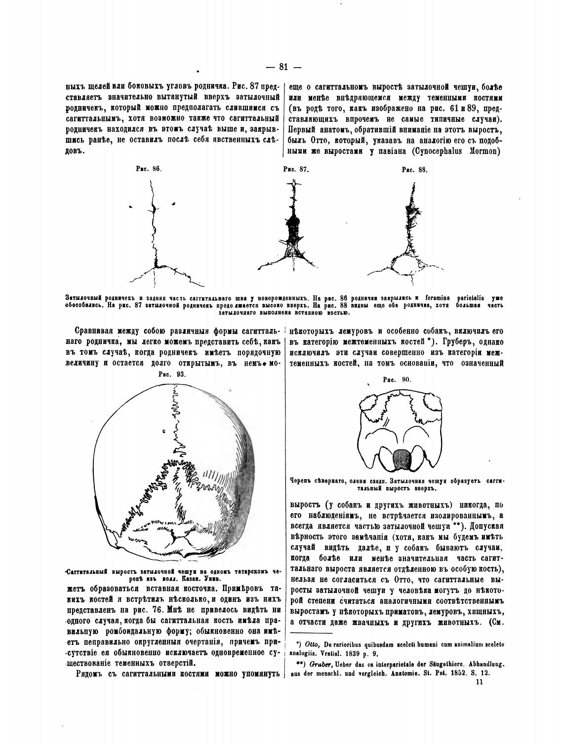 Затылочный родничиь в задняя часть саггитаив.го шва у новорощеиныхъ. На рве. 86 родничви завры..сь и roramiaa parielalia уве
