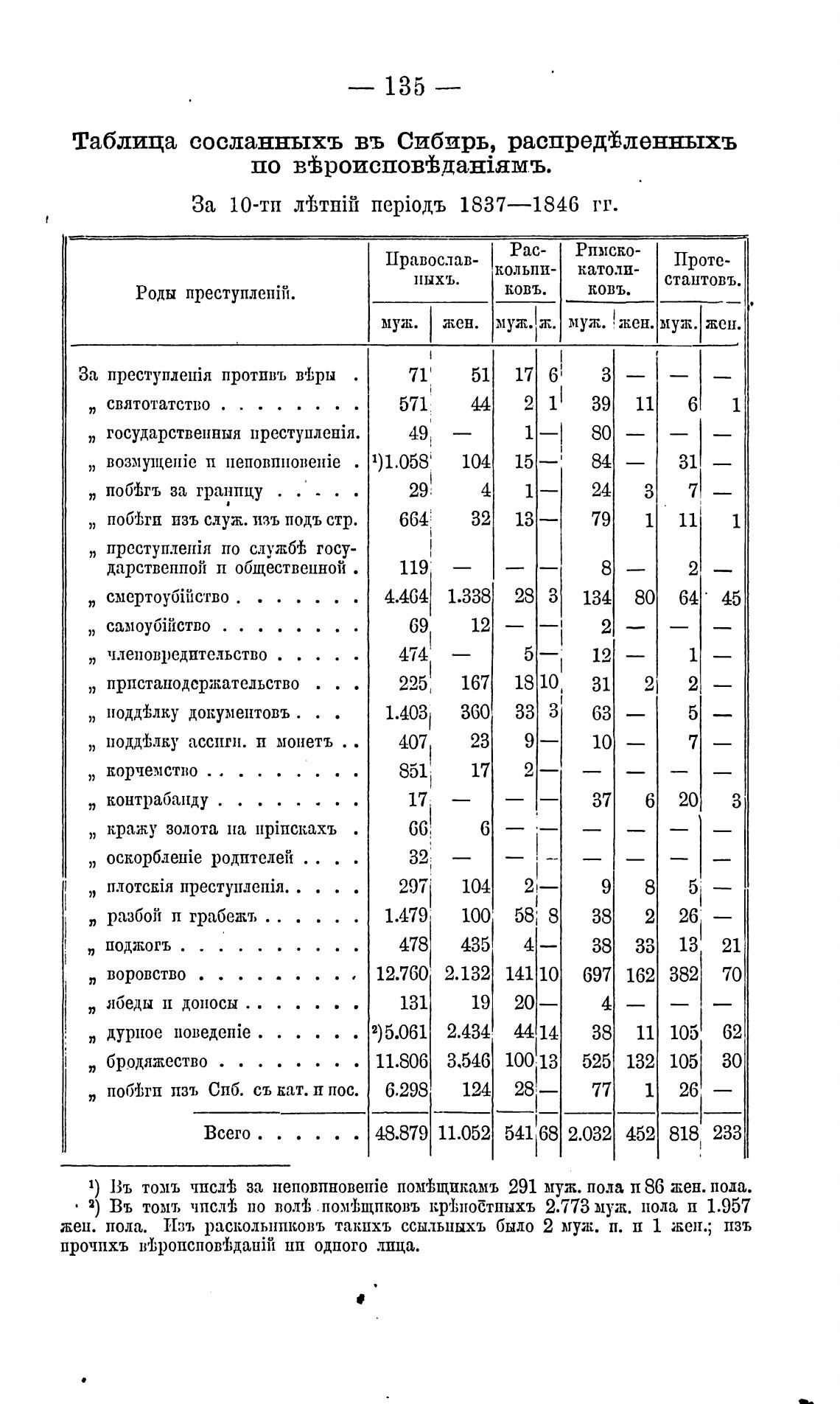 Таблица сосланныхъ въ Сибирь, распредфленныхъ