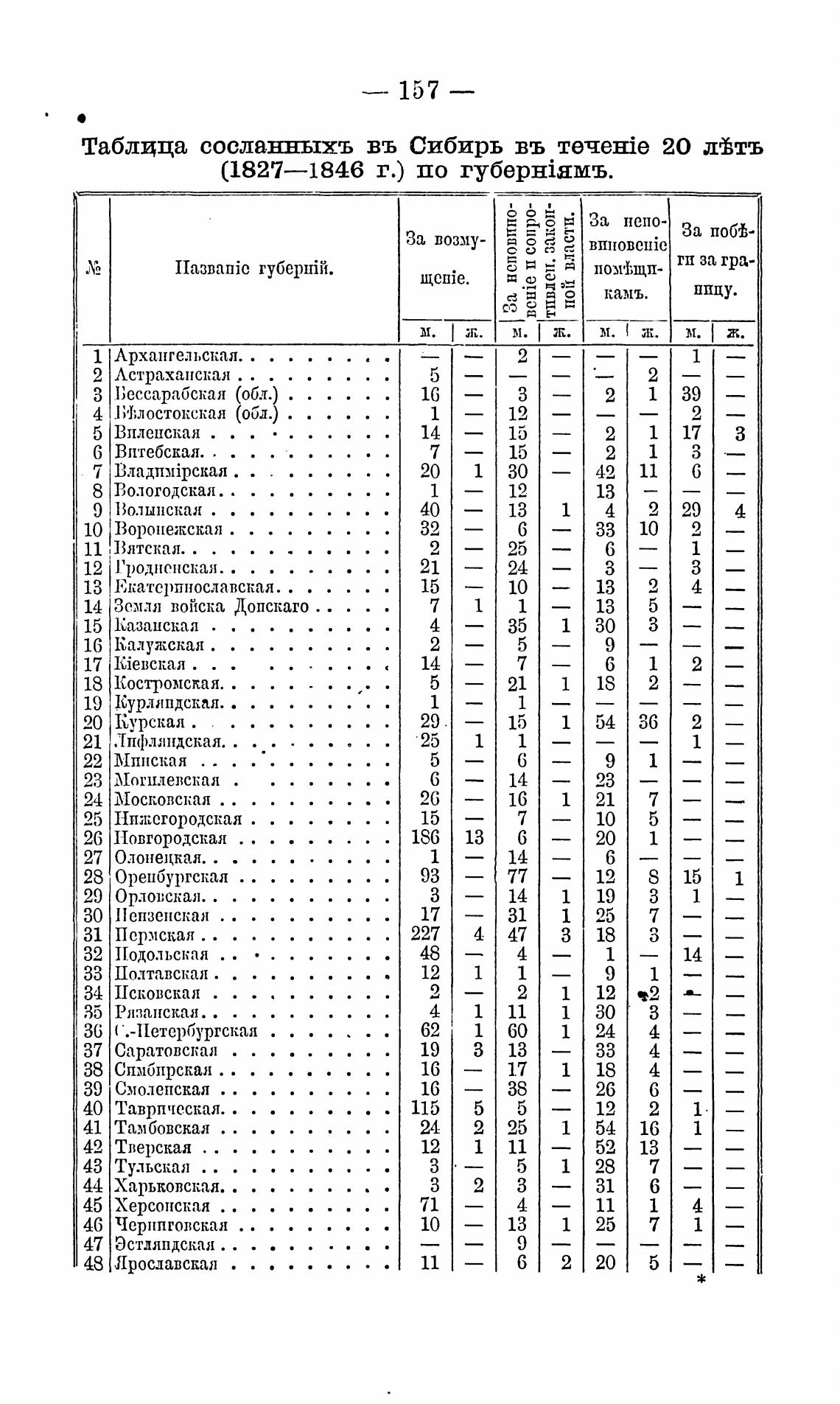 Таблица сосланныхъ въ Сибирь въ 20 д%ТЪ