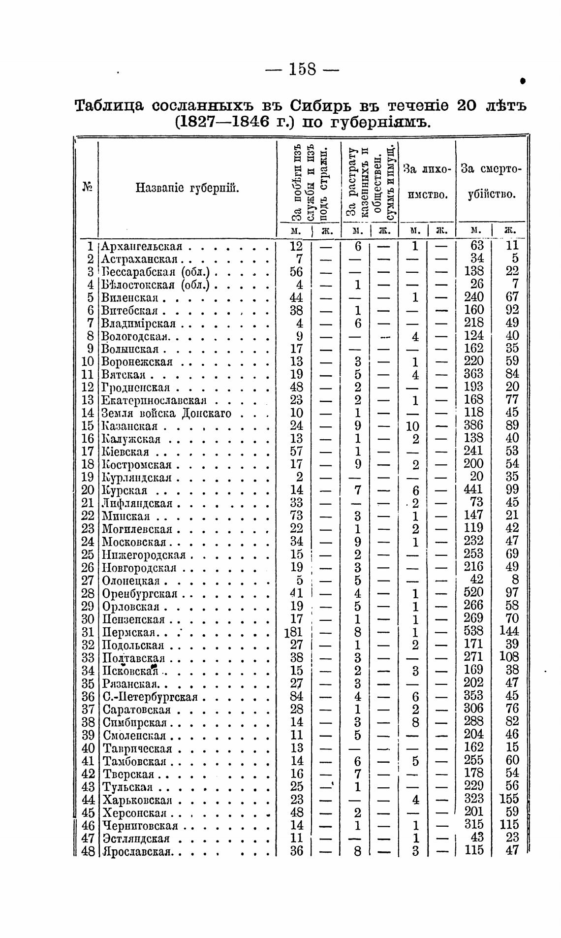 Таблица сосланныхъ въ Сибирь въ 20 л±тъ
