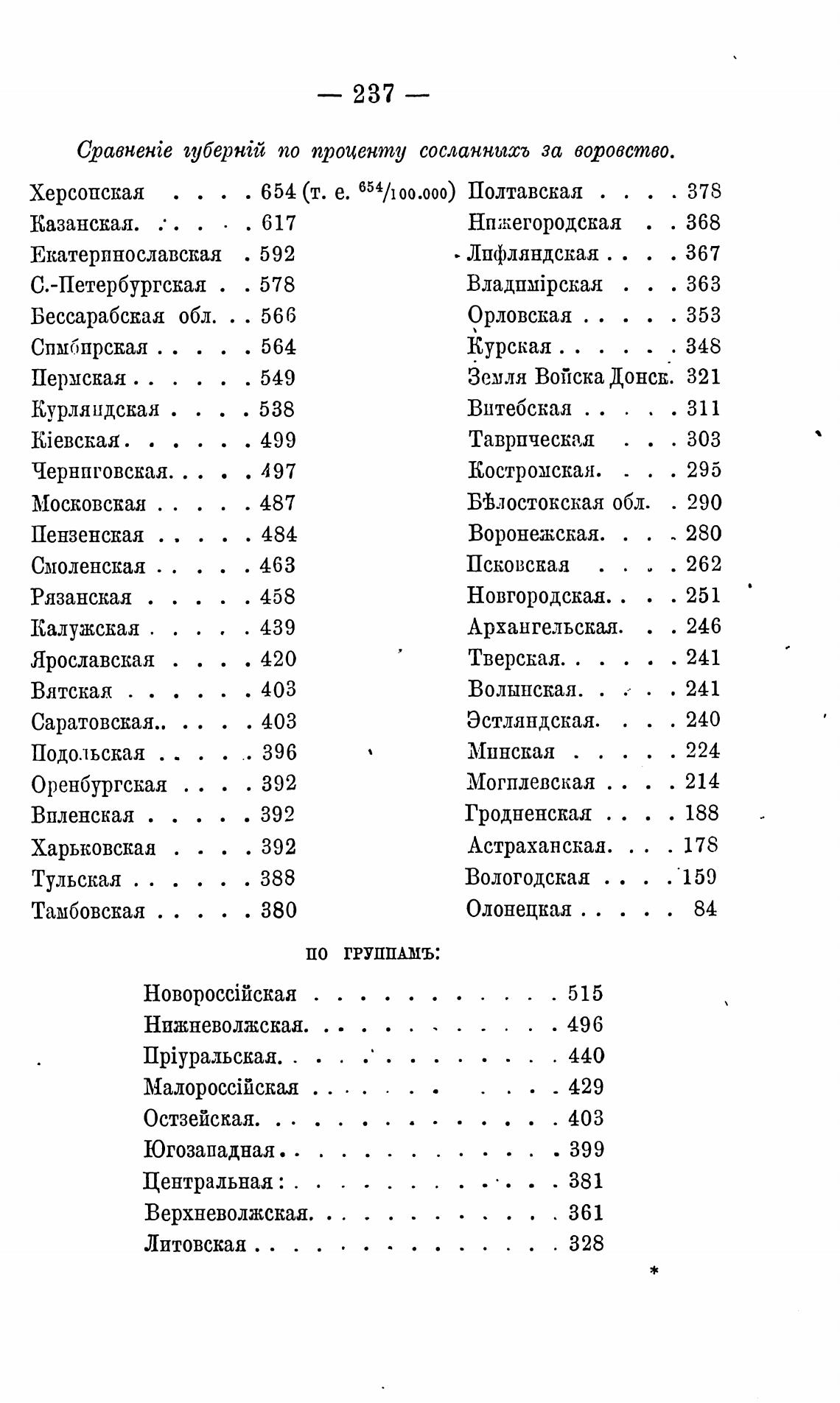 CpaBHeHie по проценту сосланнысъ за воровство.