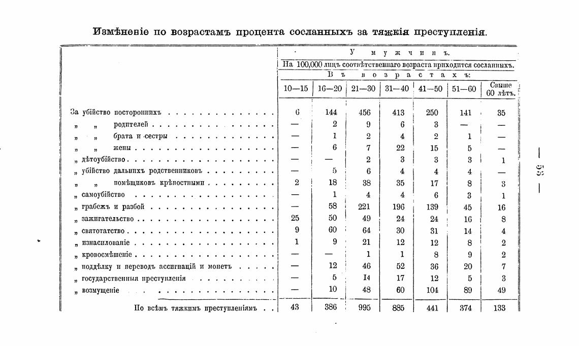 по возрастамъ процента сосланныхъ за