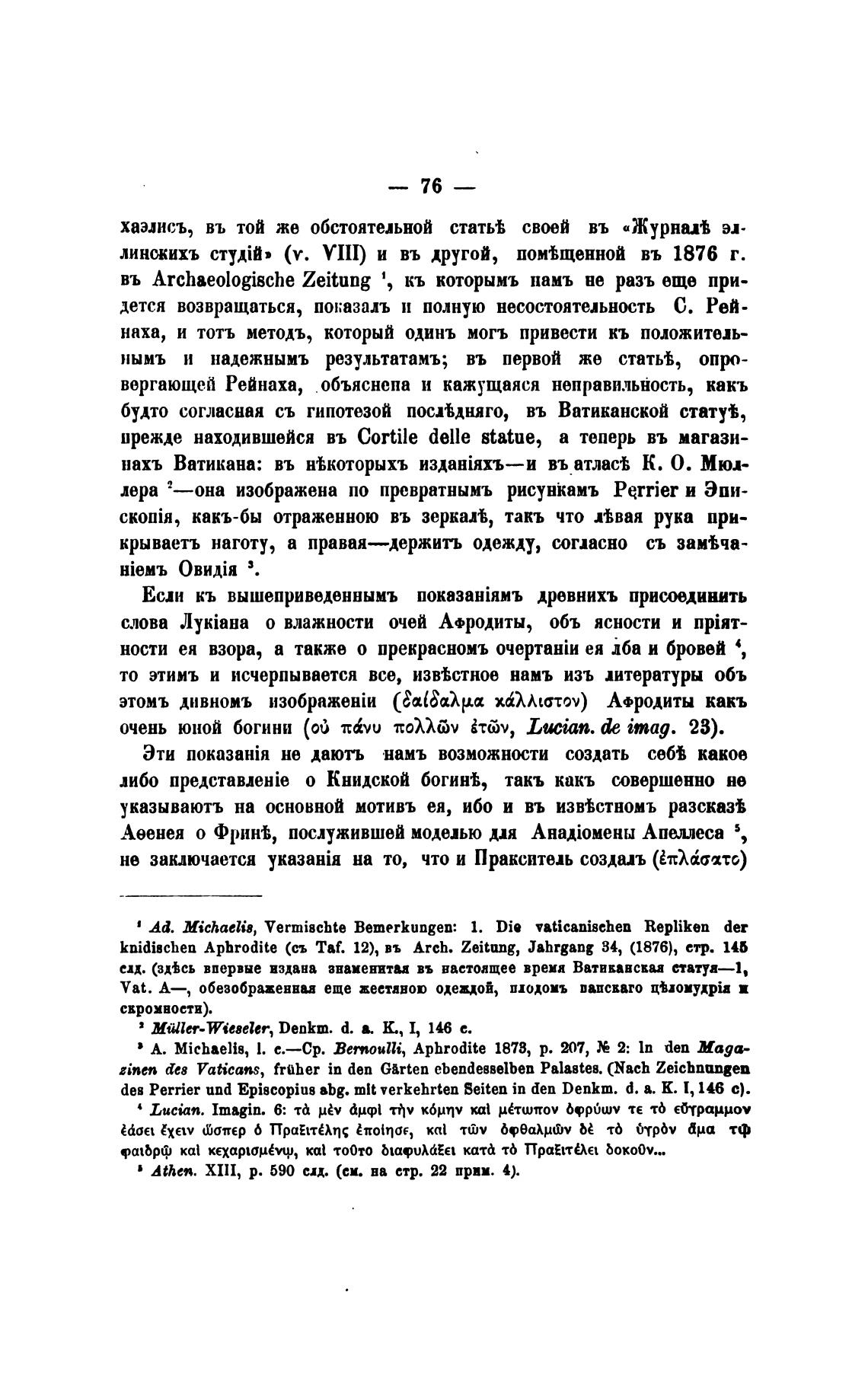 knidiscben Apbrodite (съ Taf. 12), въ Arch. Zeitung, Jahrgang 84, (1876), стр. 146