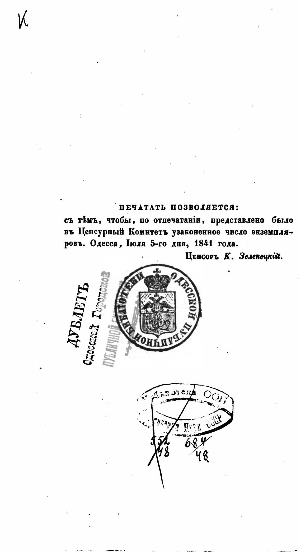 ровъ. Одесса, Июля 5-го дня, 18И года.