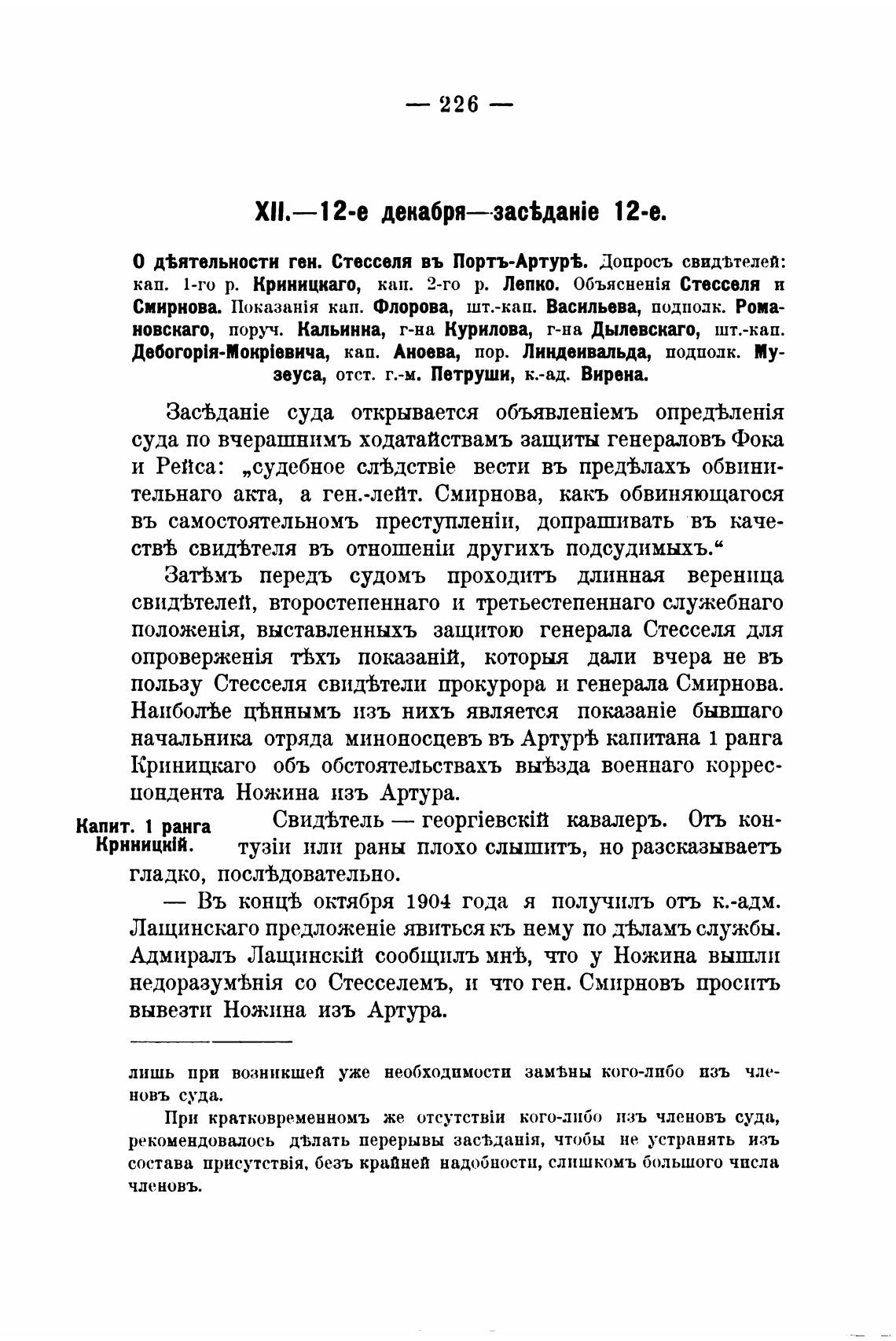 кап. 1-го р. Криницкаго, кап. 2-го р. Лепко. Объяснен{я Стесселя н