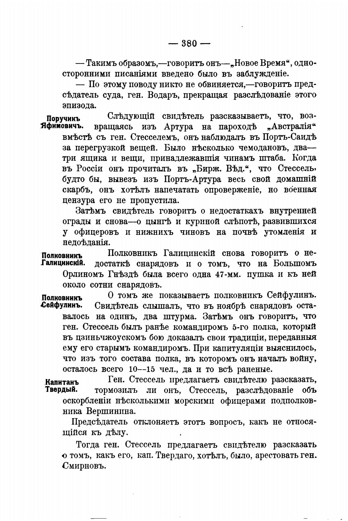 Ген. Стессель предлагаетъ свидеВтелю разсказать,