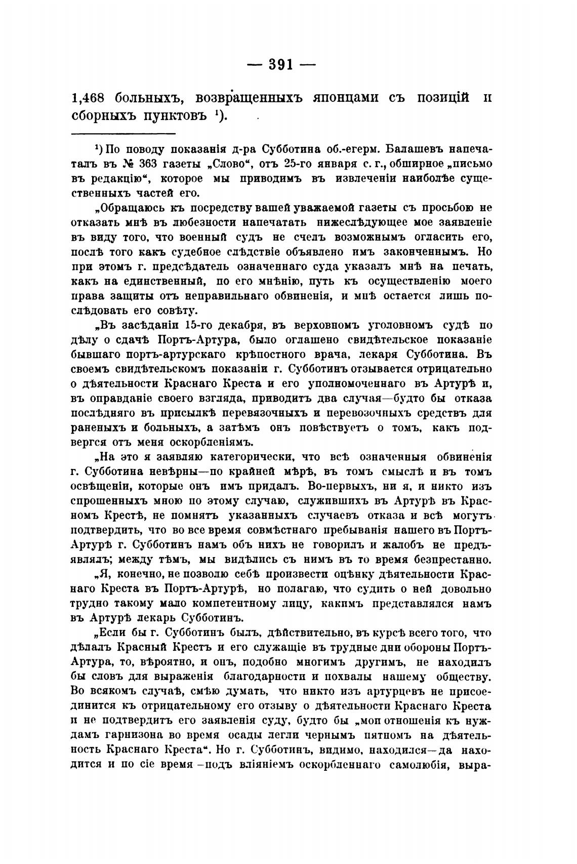 бывшаго порть-артурскаго врача, лекаря Субботина. Въ