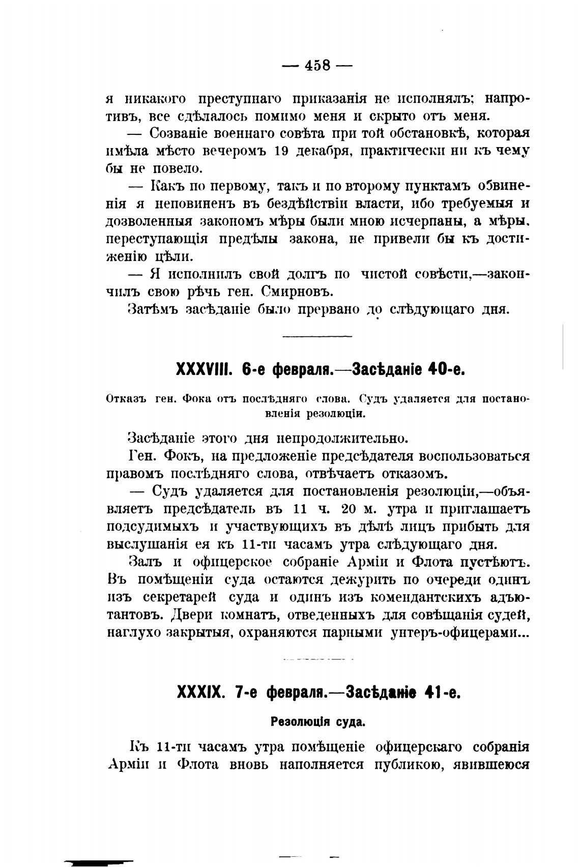 Отказъ ген. Фока отъ послт,дняго слова. Судь удаляется для постано-