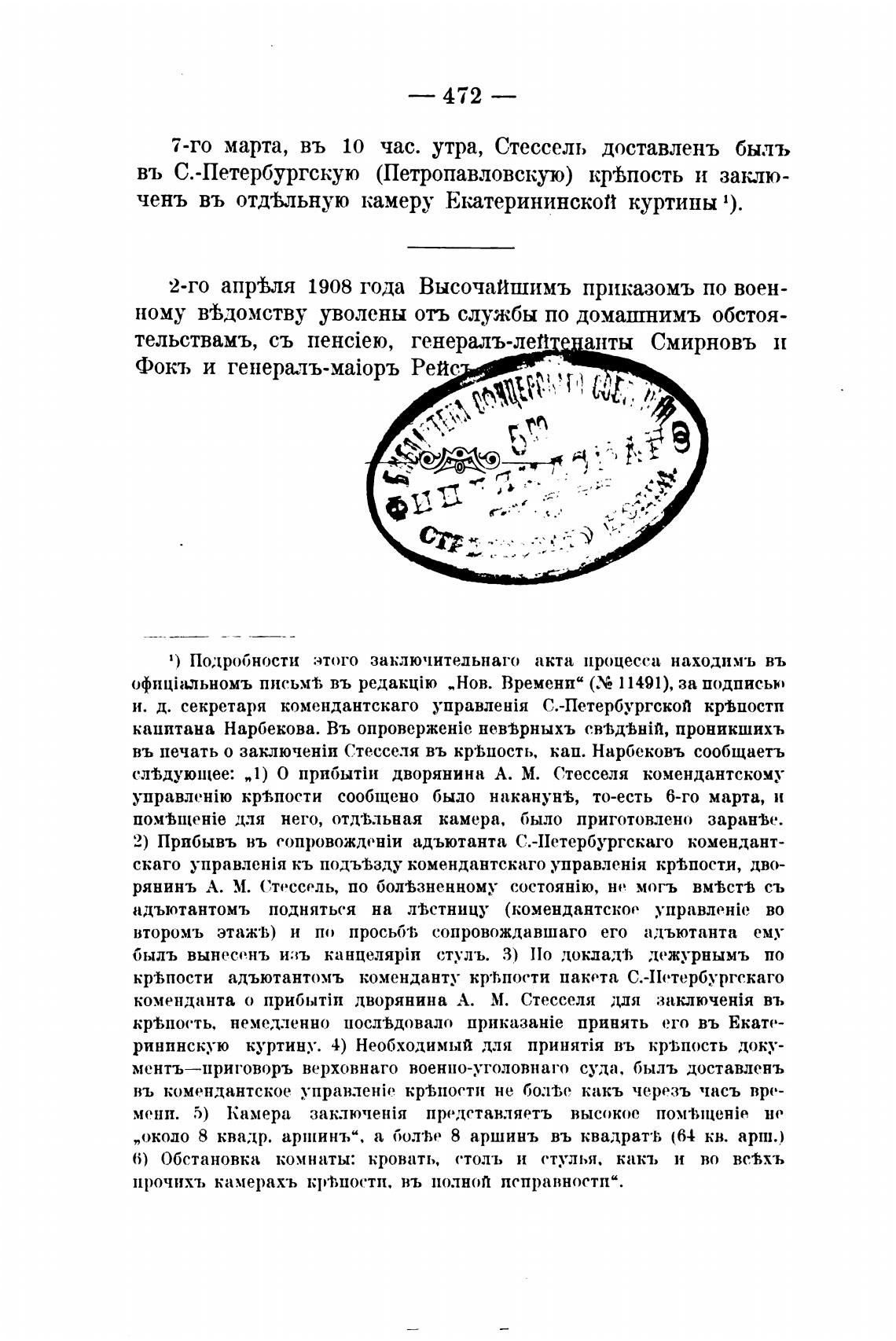 въ печать о Стесселя въ кр•Ьпость. кап. Нарбековъ сообщаетъ