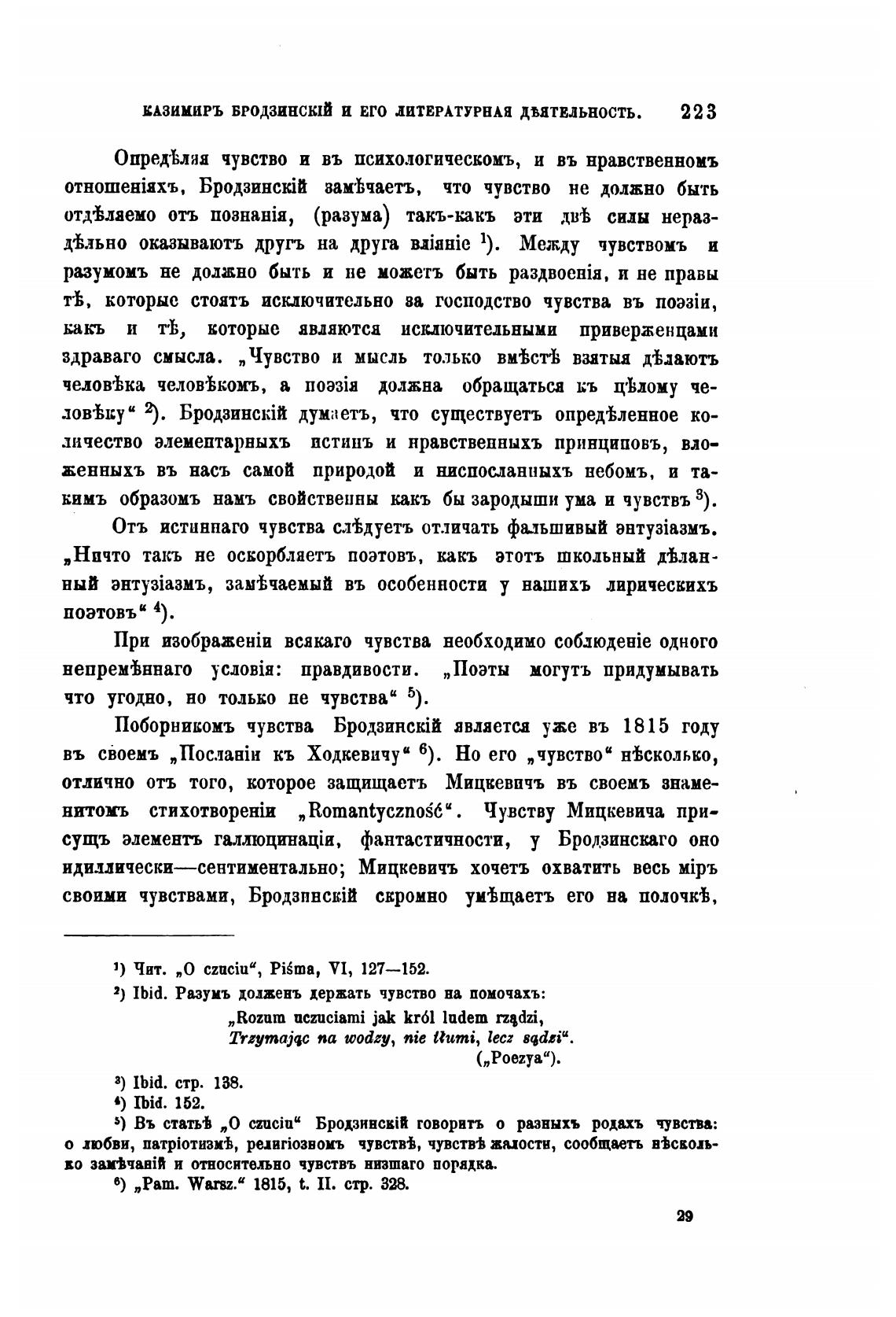 Поборникомъ чувства Бродзинстй является уже въ 1815 году