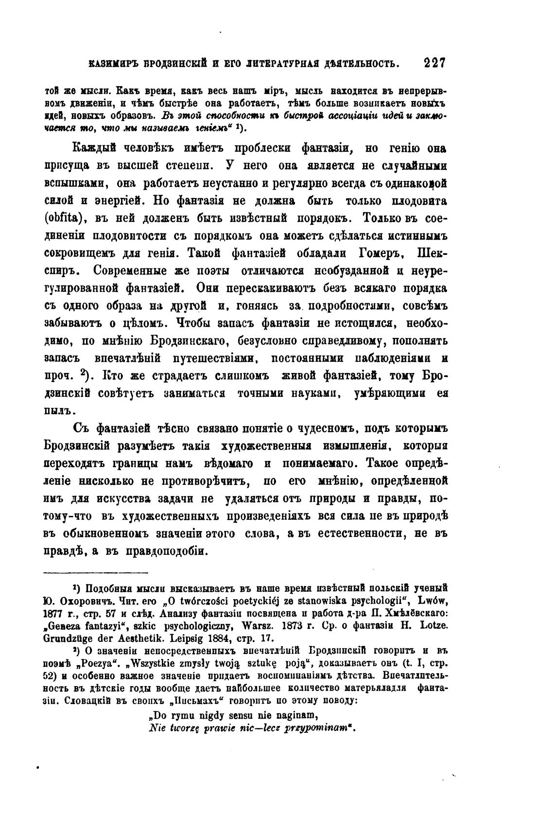 „Geaeza fantazyi“, szkic psycbologiczny, Warsz. 1873 r. Ср. о Н. Lotze.