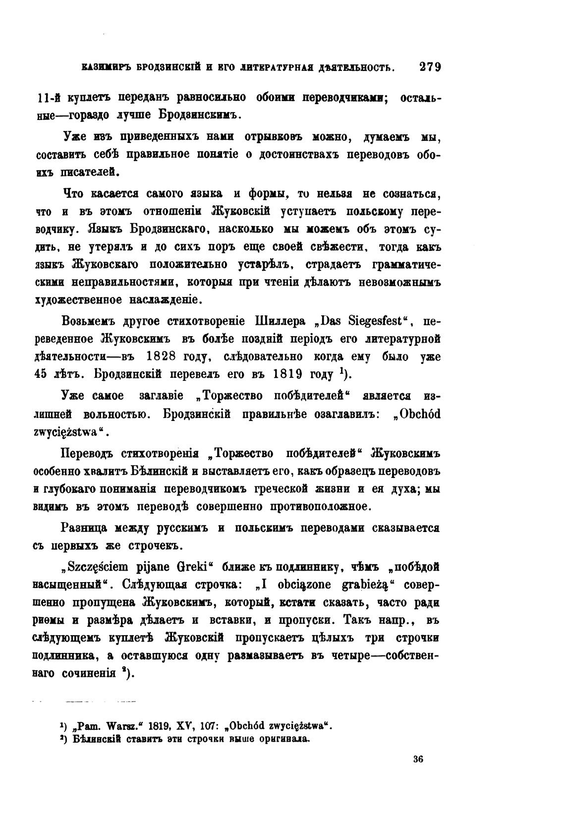 1) „Раш. WaT.“ 1819, ХУ, 107: „0bch6d zwycieistwa“.