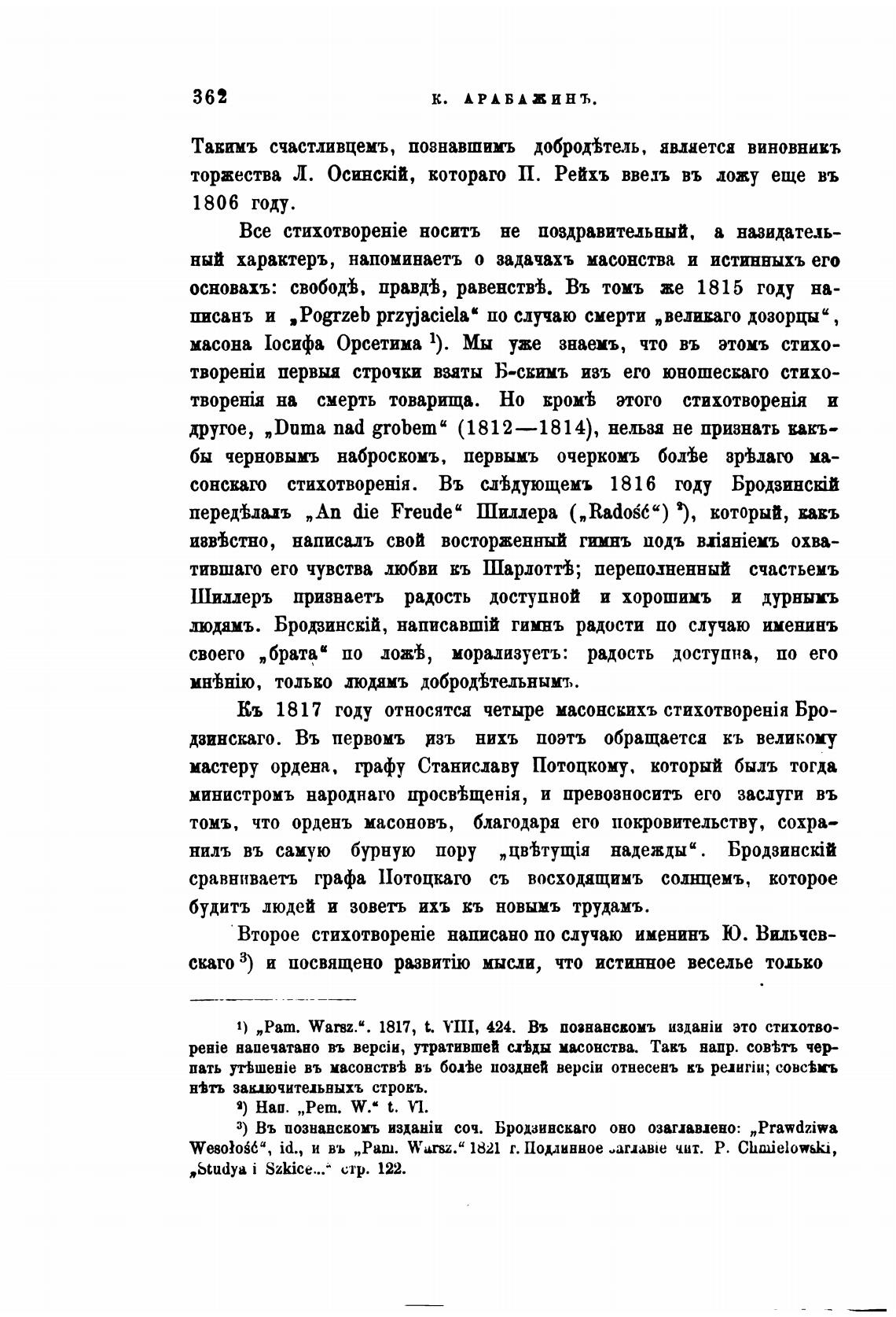 1) „Рат. Wamz.“. 1817, t. УП1, 424. Въ познавсвомъ это стихотво-
