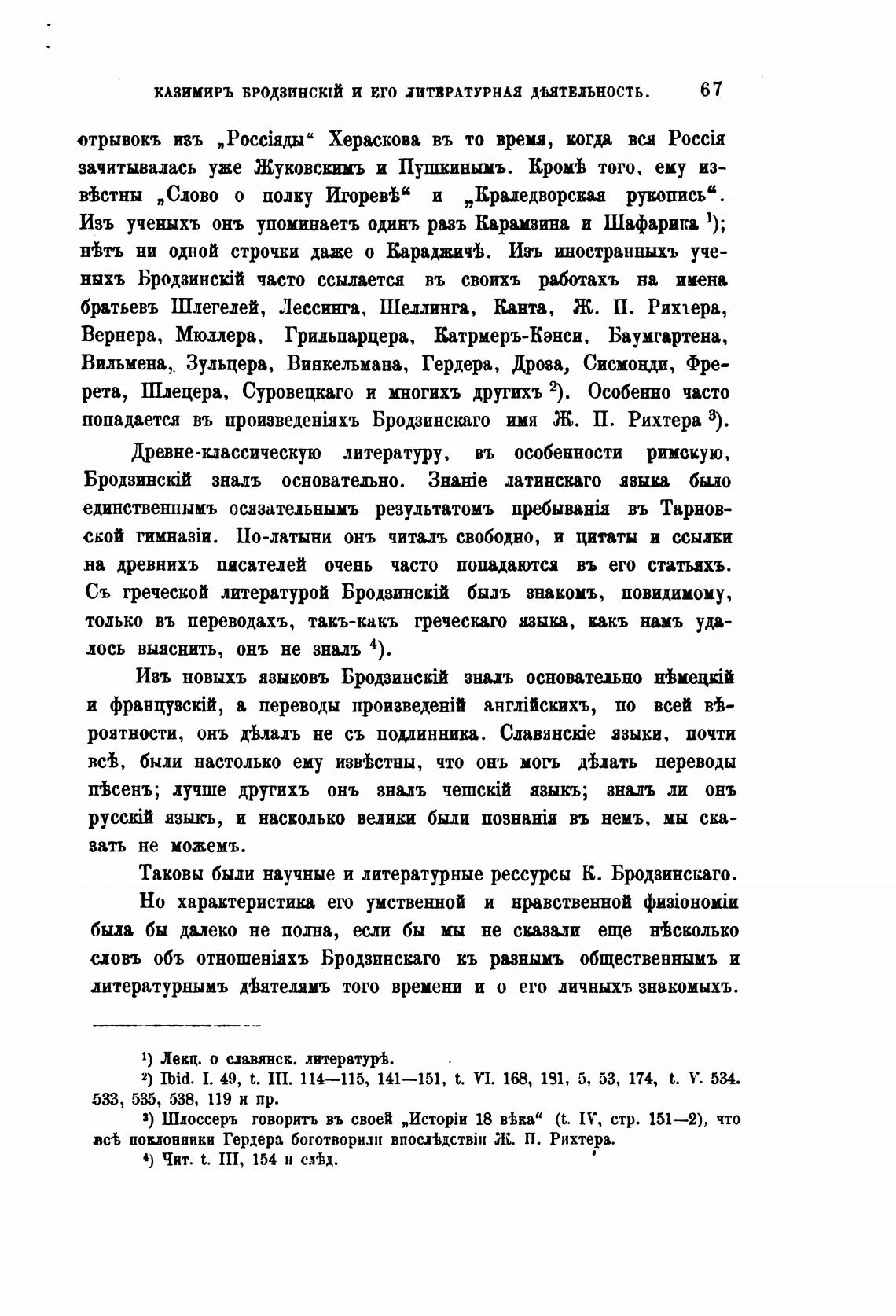 Изъ ученыхъ онъ упоминаетъ одинъ разъ Карамзина и Шафарика 1);
