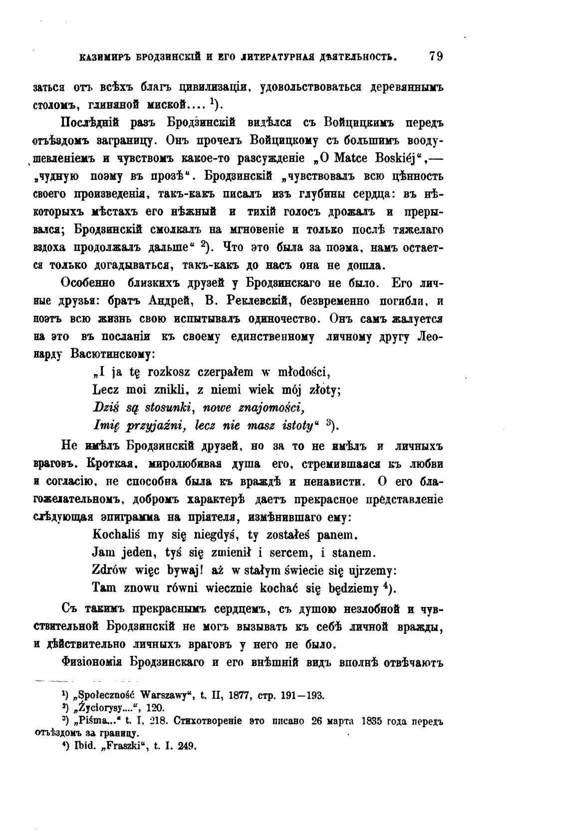 Особенно близкихъ друзей у Бродзинскаго не было. Его лич-
