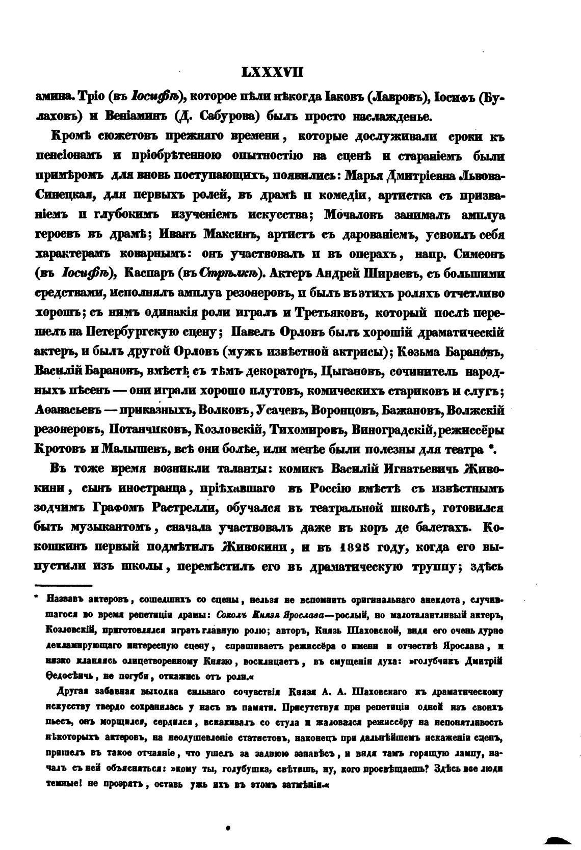актерь, и быль другой Орловъ (мужь извћотной актрисы); Кезьма Бар—