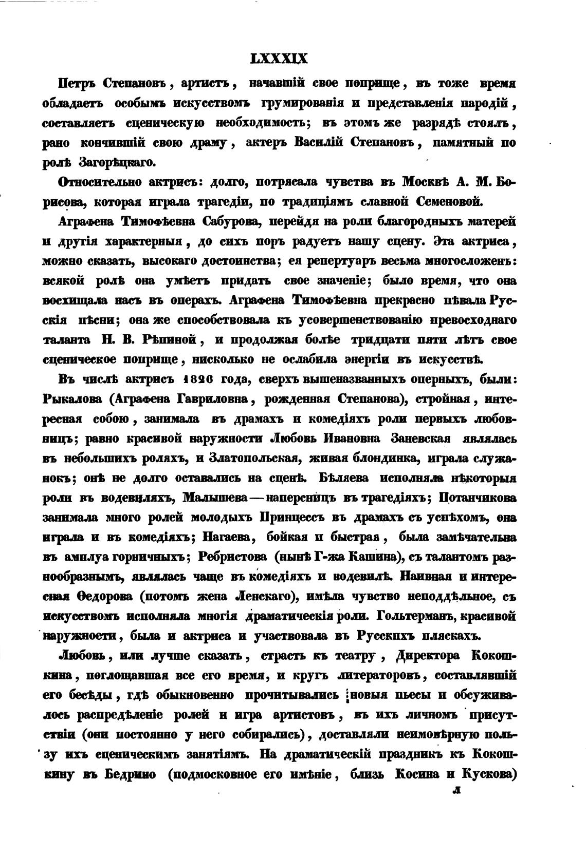 Агрнна Тимоф%евна Сабурот, перйдя на роли благородныхъ матерй