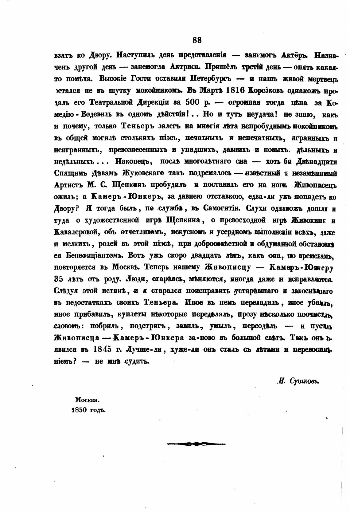 Артисть М. С Щепкинъ прбудилъ и поставидъ его на нотњ