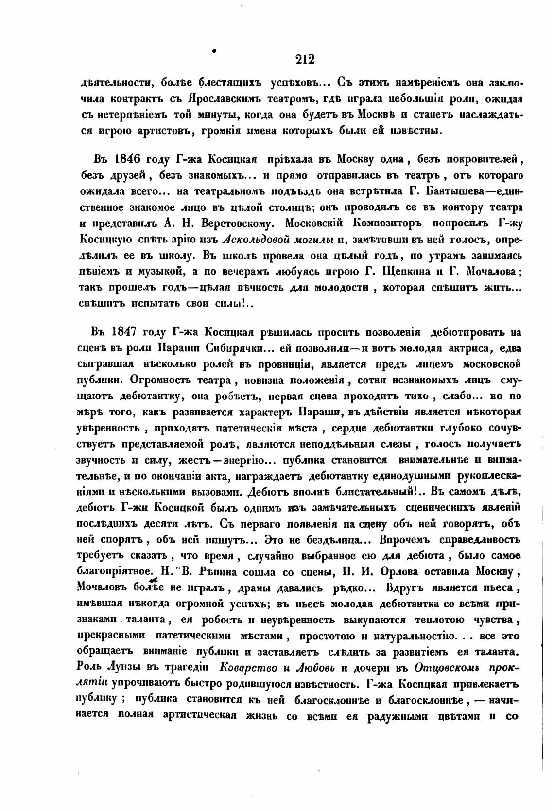 Въ 1847 году Г-жа Косицкая рвшилась просить дебютировать на