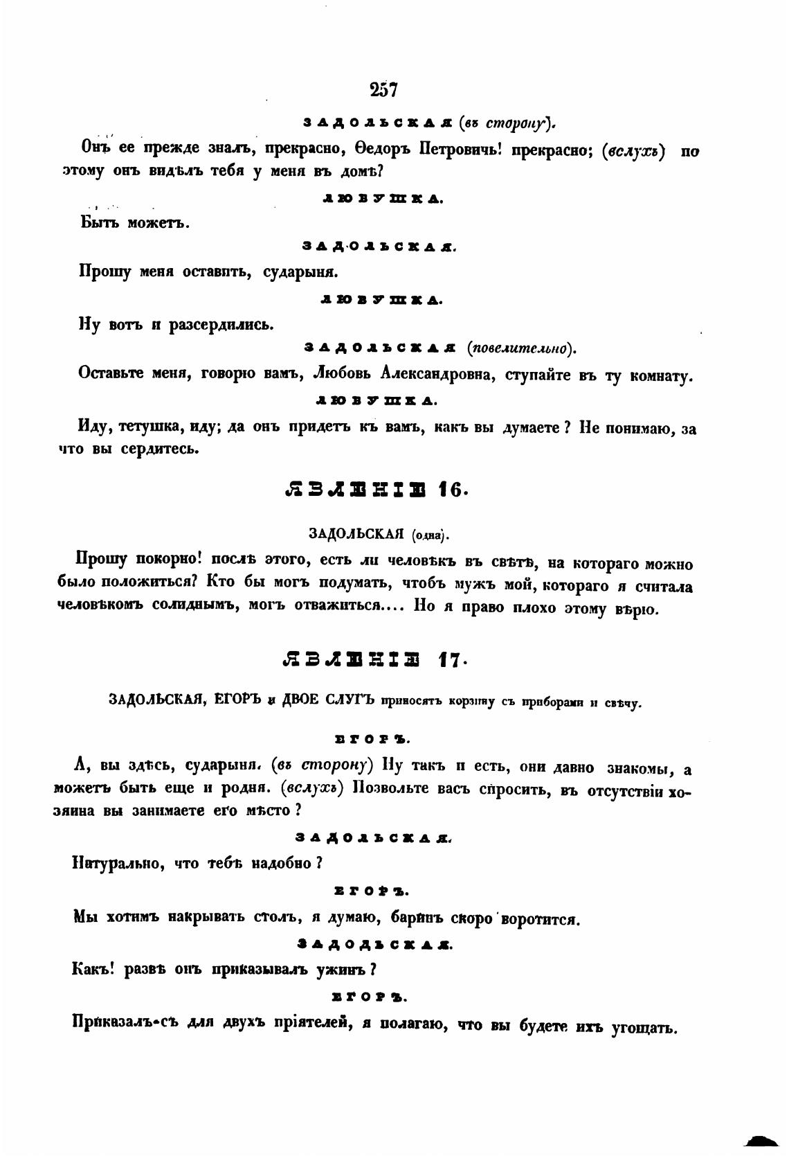 Л, вы здт;сь, сударыня, (в; сторону) Ну такъ п есть, они давно знако.мы, а