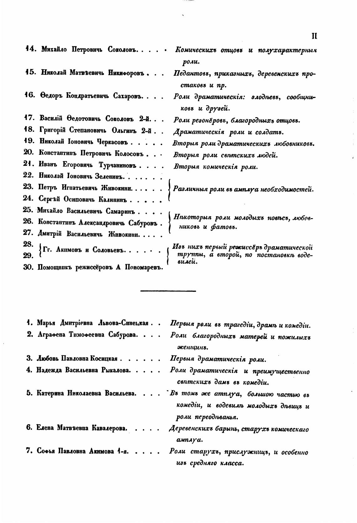 Вторыя комическ{я роли.