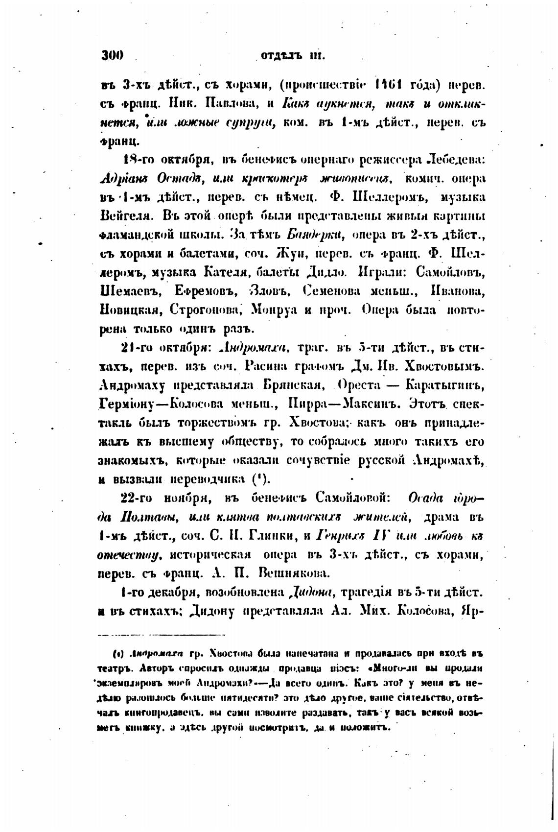 Андромаху представляла Брянская, Ореста — Каратыгинъ,