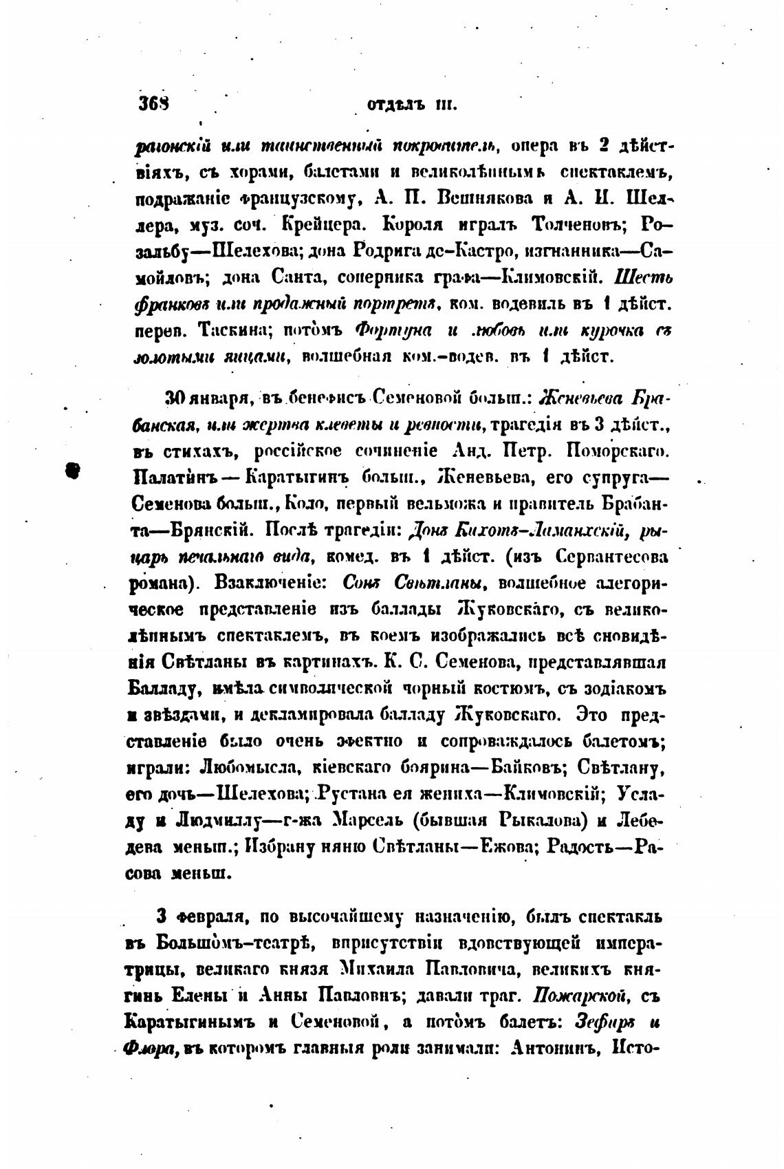 Каратыгинымъ и Семеновой, а потЬмъ балеты Зефир и