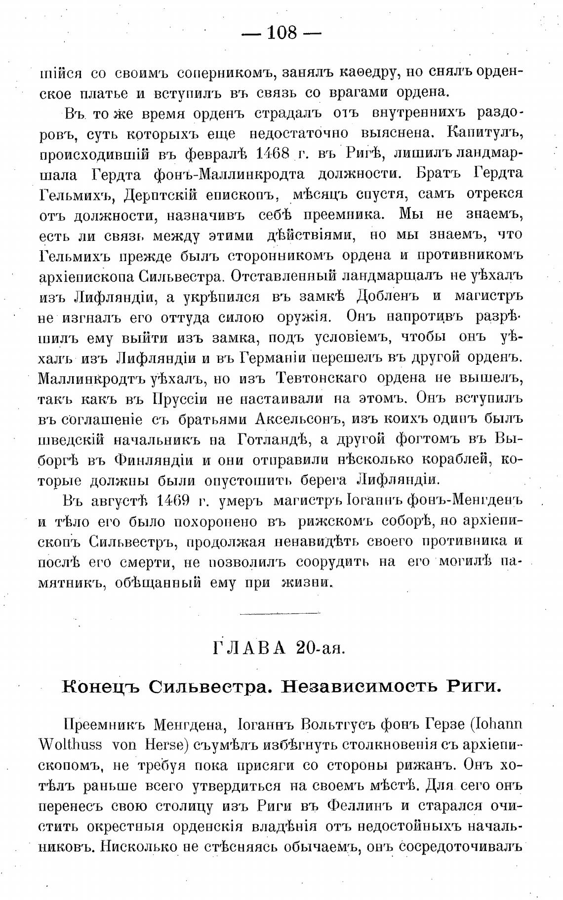 Въ августФ, 1469 г. умерь магистр'ь Гоганнъ фонъ-Менгденъ