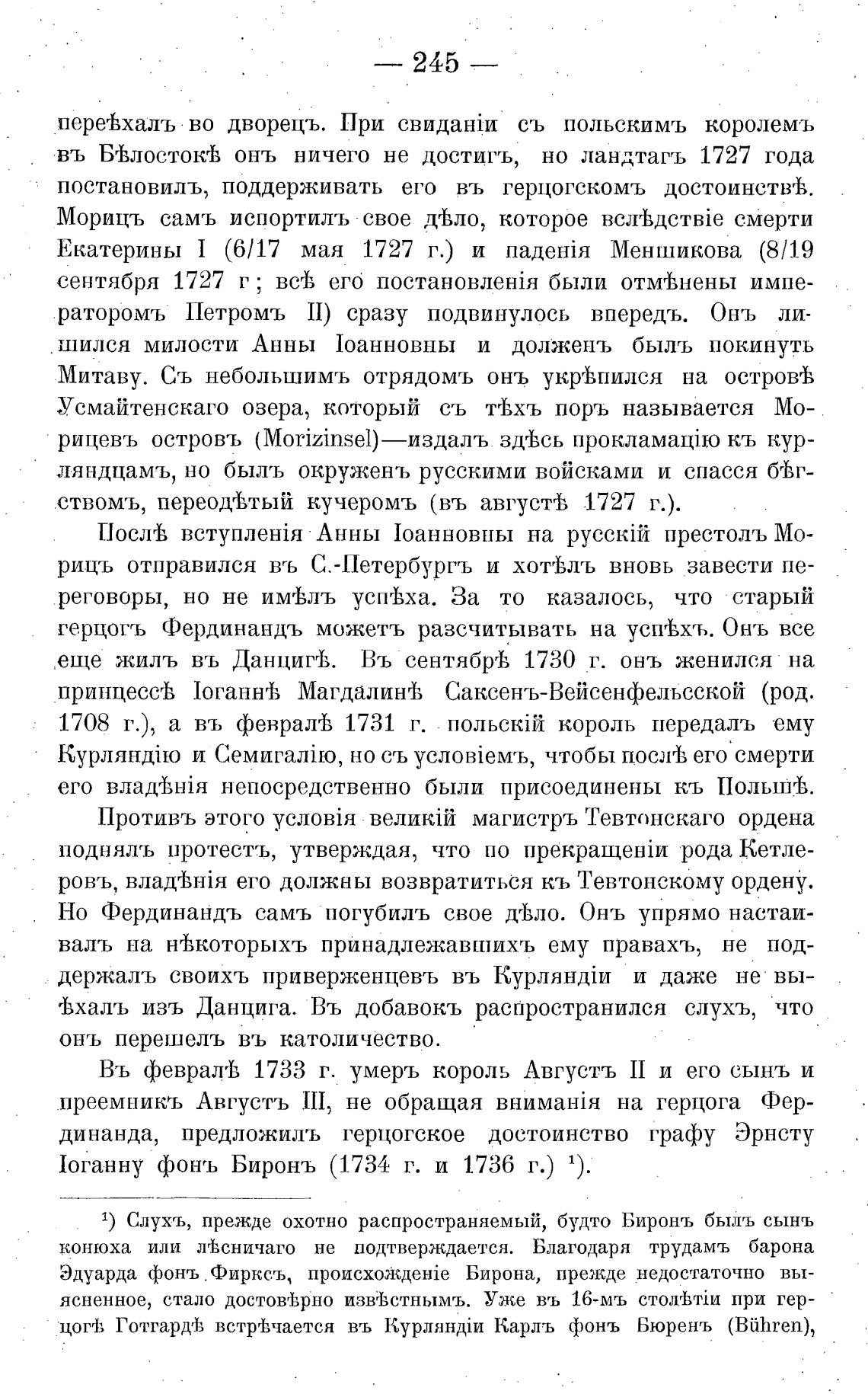 Эдуарда фонъ Фирксъ, Бирона, прежде недостаточно вы-