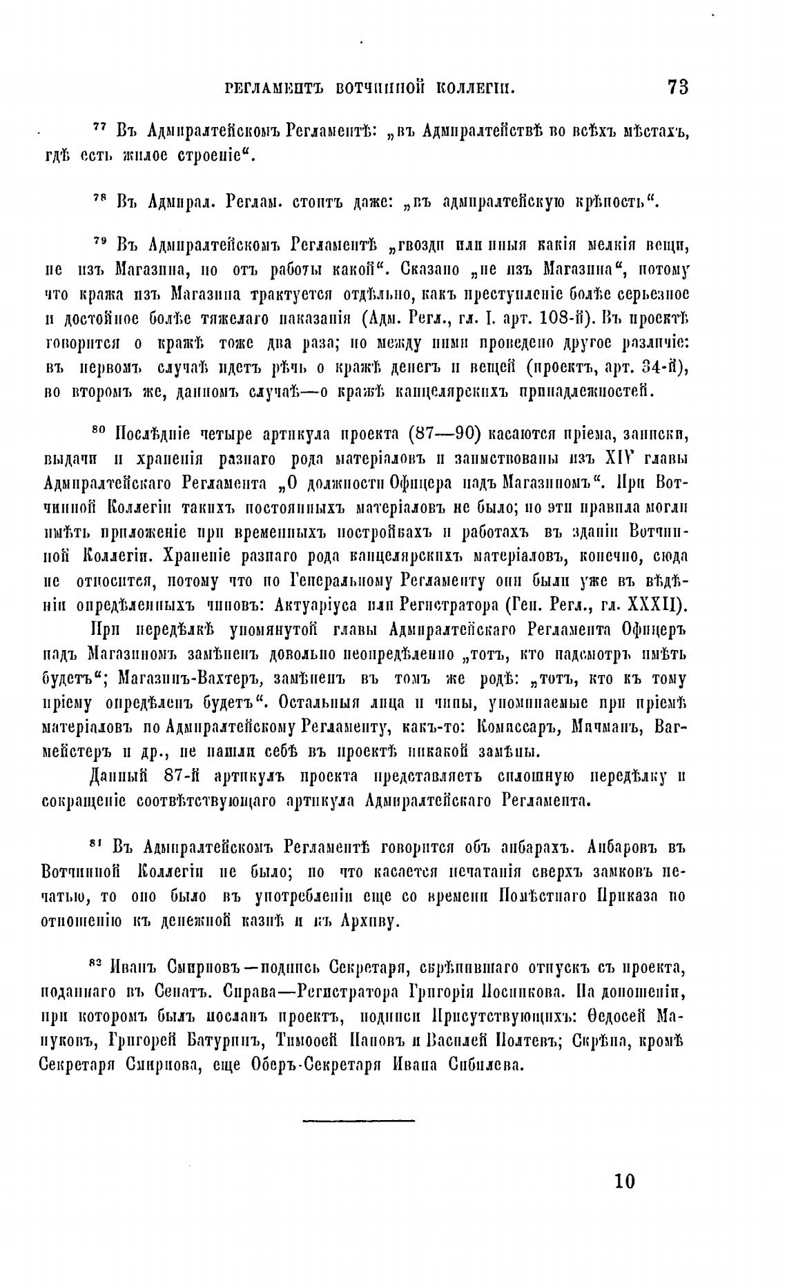77 Въ Адмиралтейсковљ Регламептт;: „въ Адмиралтействв во всвхъ