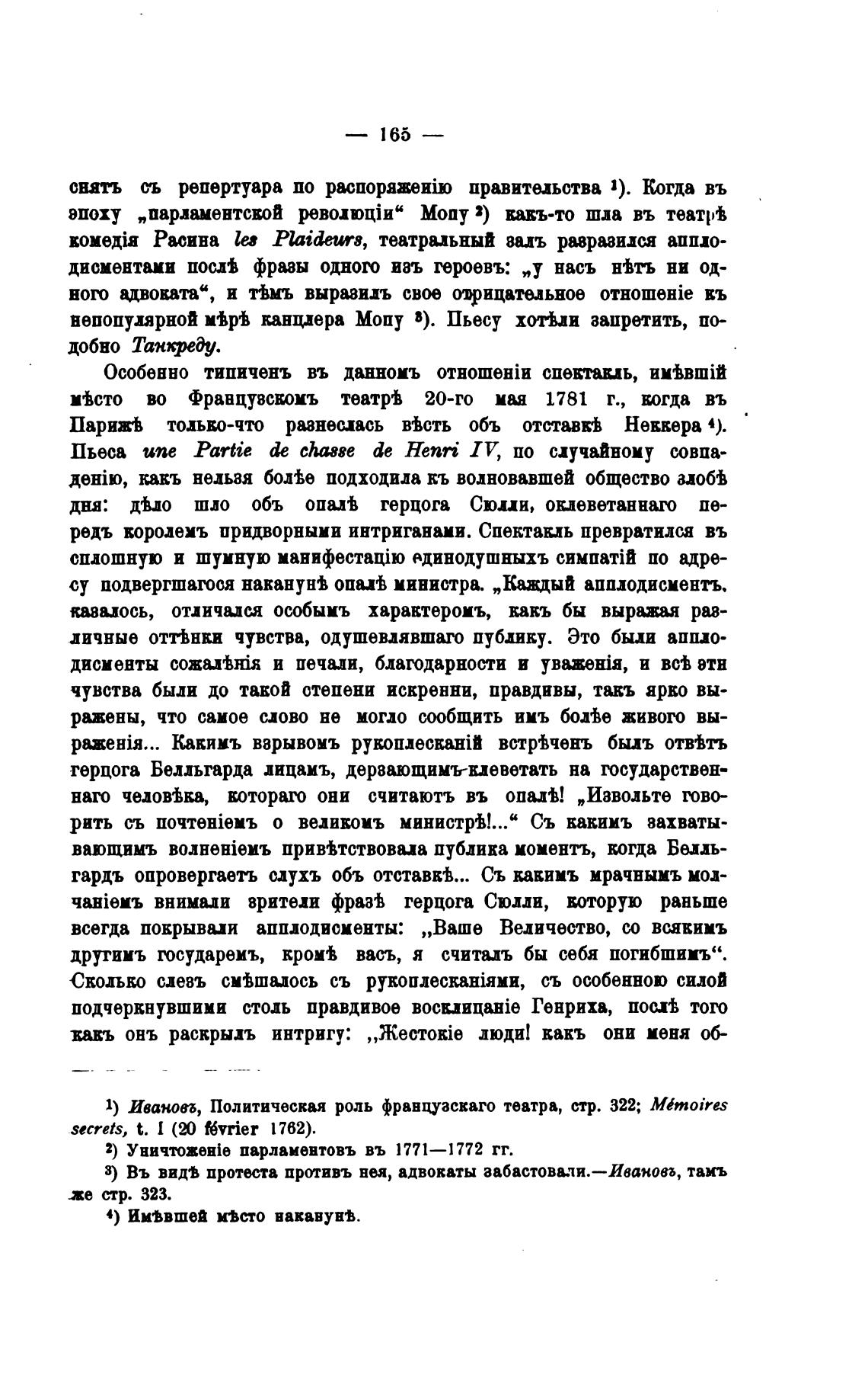 1) ИваНОВб, Политическая роль фравцуаскаго театра, стр. 322; Mbnoires
