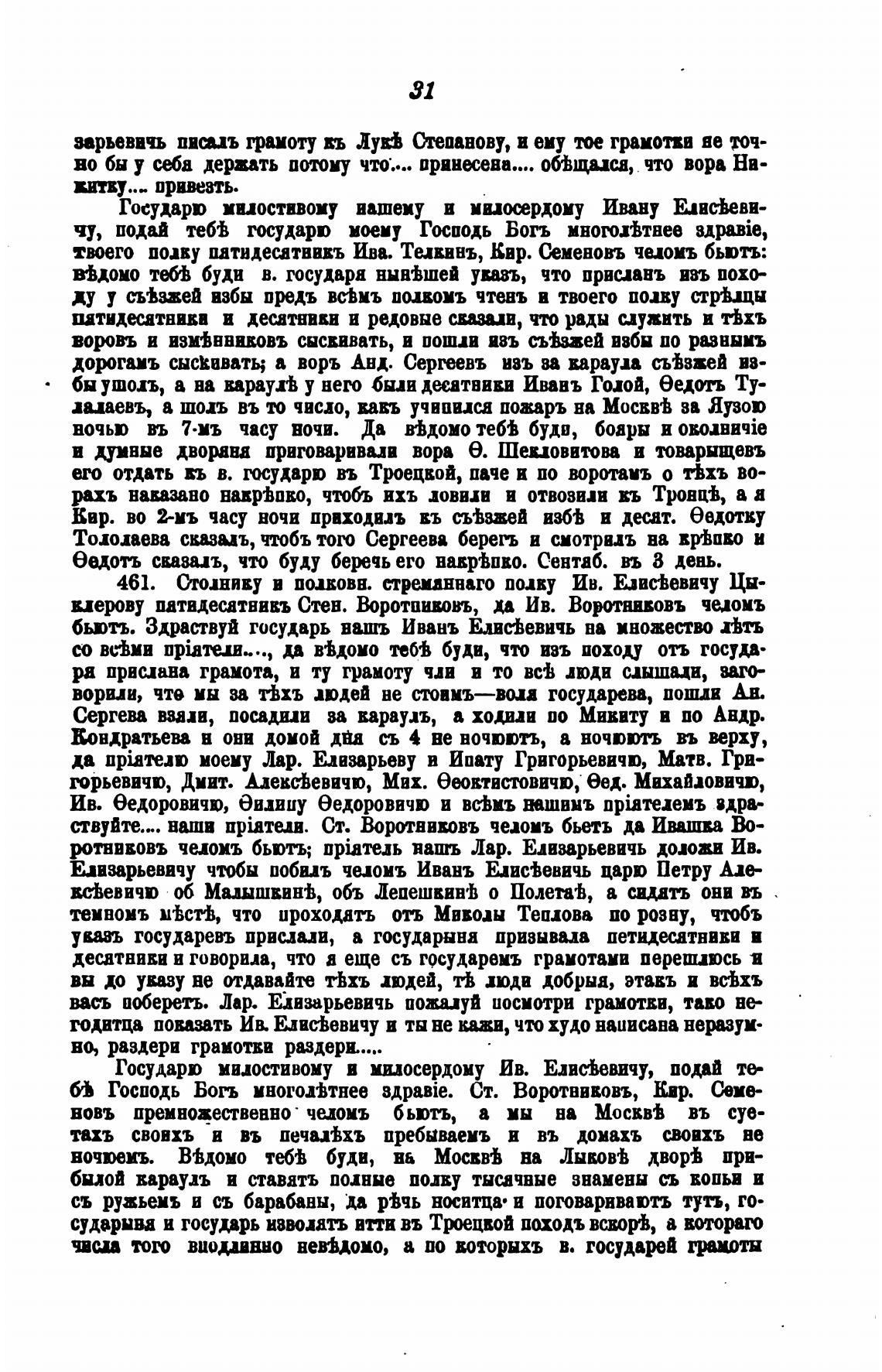 461. Отливу в попова. треманнаго пиву Ив. Елис•Ьевичу Цы-