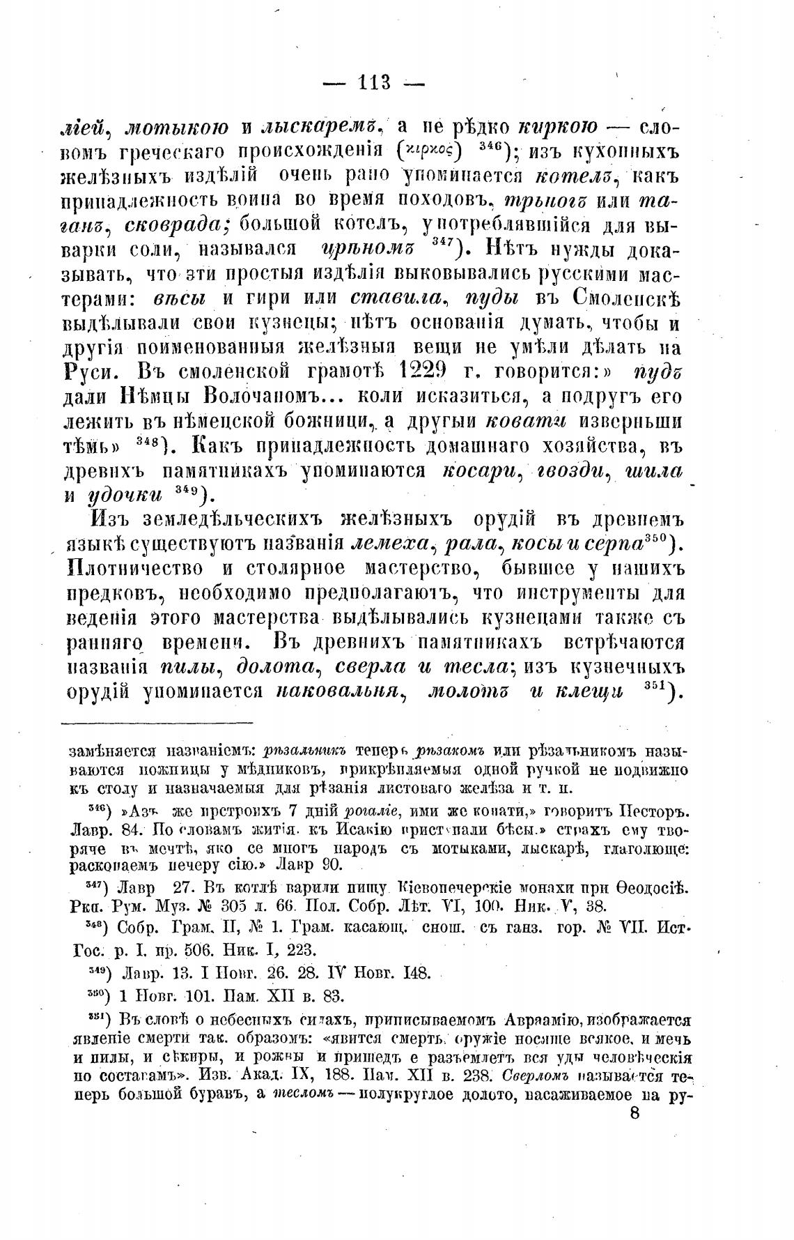древпхъ памятникахъ упоминаются косари, гвозди, шило