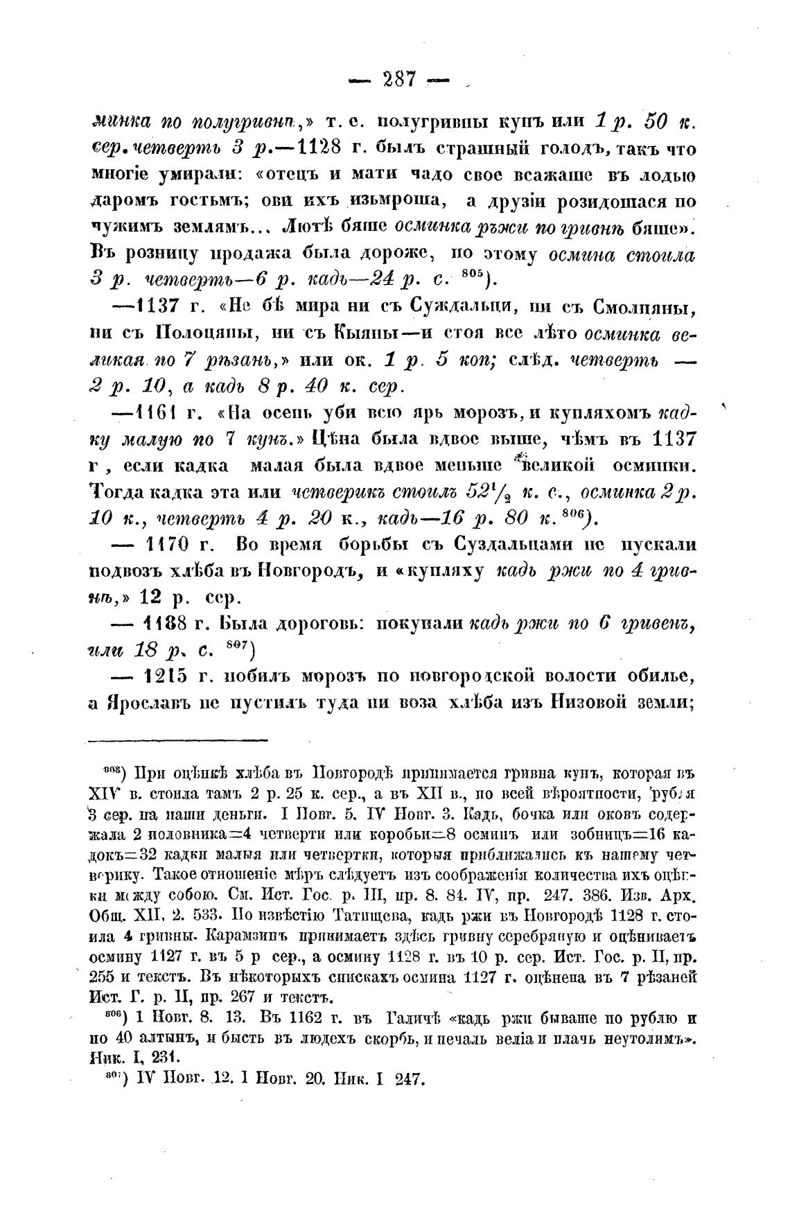 806) | Новг. 8. 13. Въ 1162 г. въ ГаличТ; «кадь ржи бываше по рублю и