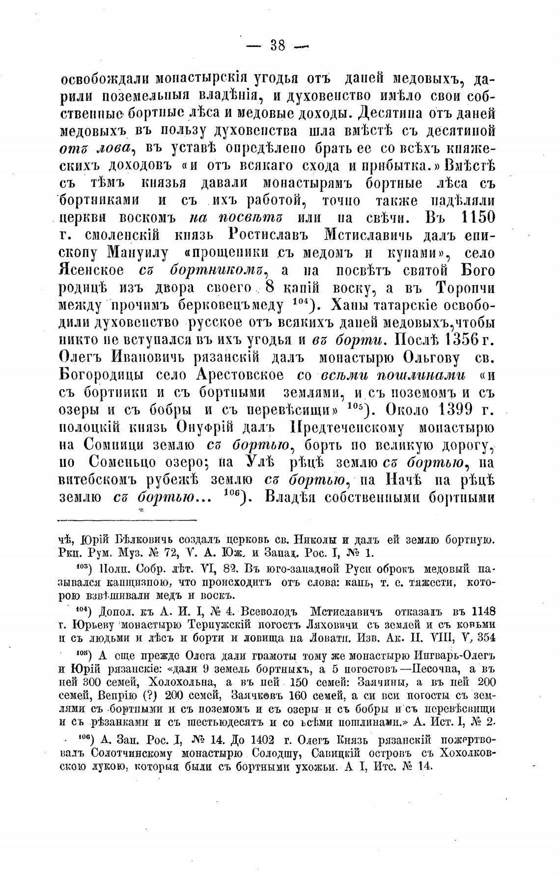 103) 11олп. Собр. „ТВт. VI, 82. Въ юго-западной Руси оброкъ медовый па-