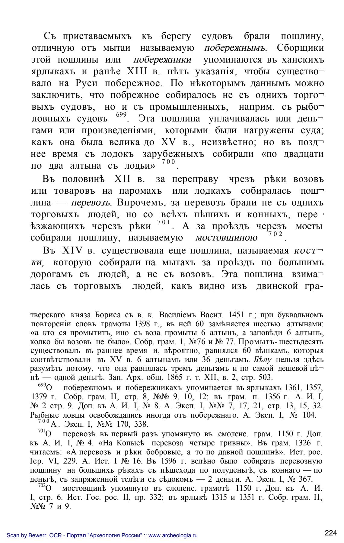 читаемы «А перевозь и реКки бобровые, а то по давной пошлины. Ист. рос.