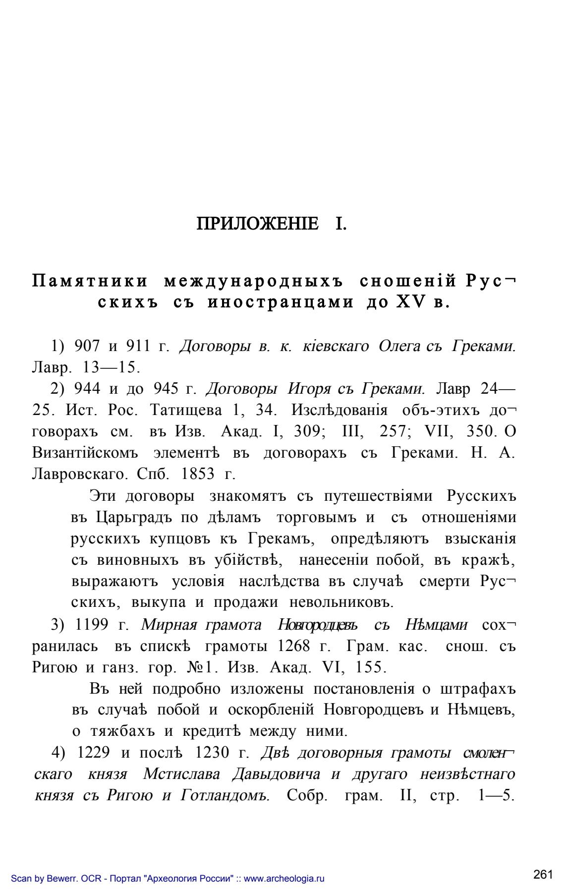 1) 907 и 911 г. Договоры в. к. kieBckaro Олега съ Греками.