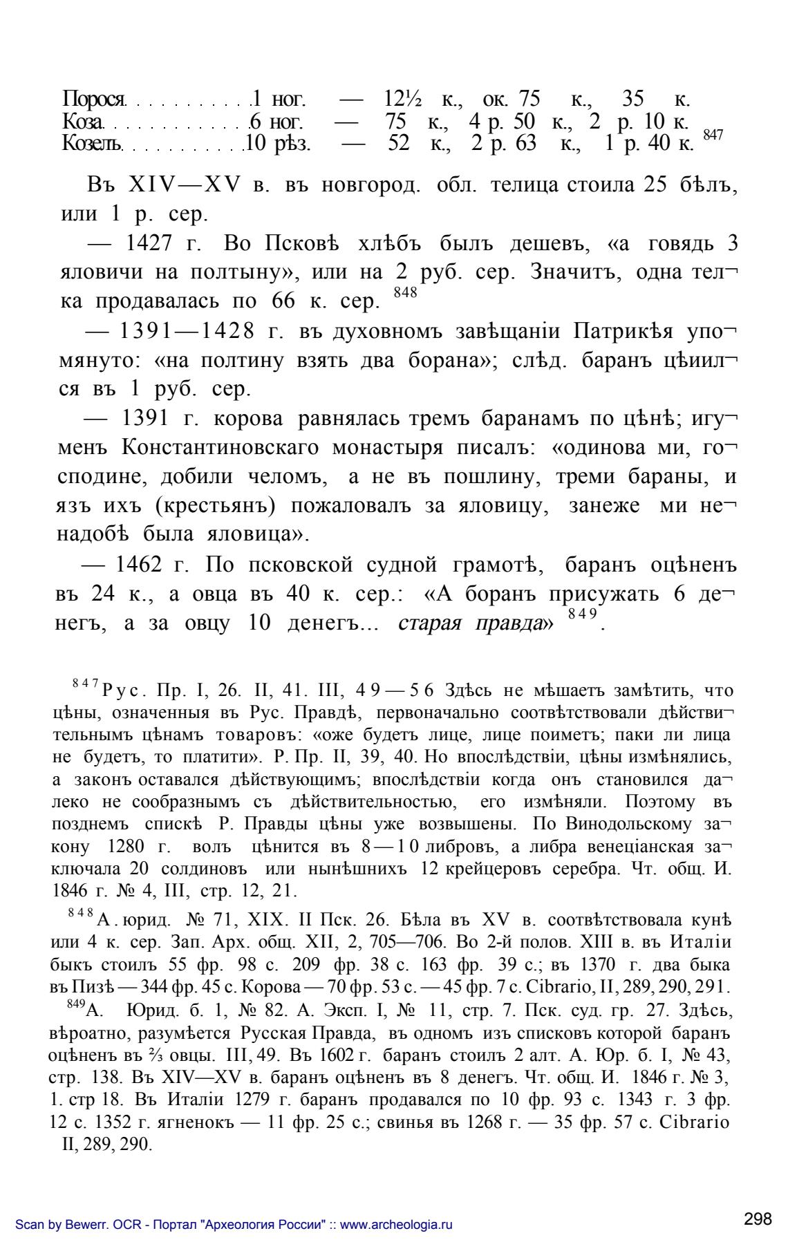 12 с. 1352 г. ягненокъ — 11 фр. 25 с.; свинья въ 1268 г. — 35 фр. 57 с. Cibrario