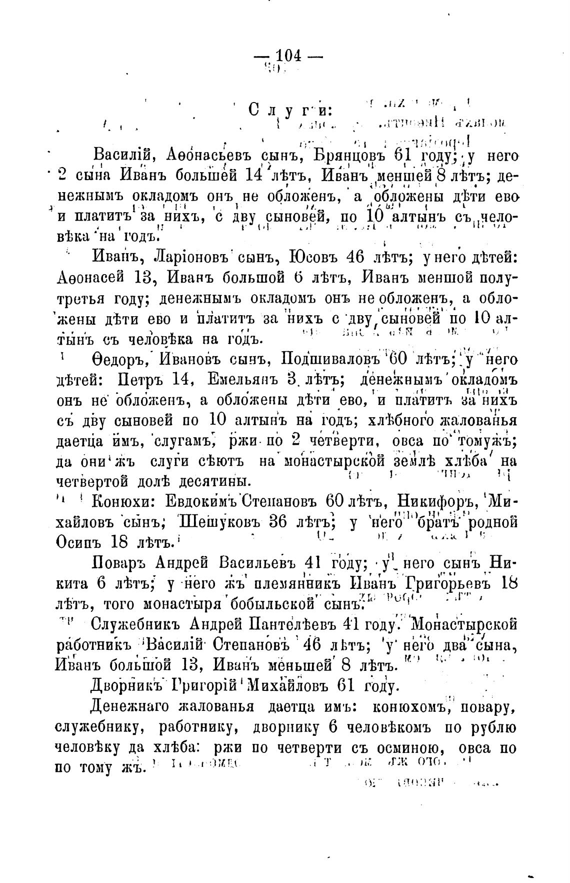 даетЙа Ймъ, •слугамъ; ржи. по 2 четверти, овса по' томуж•ъ;